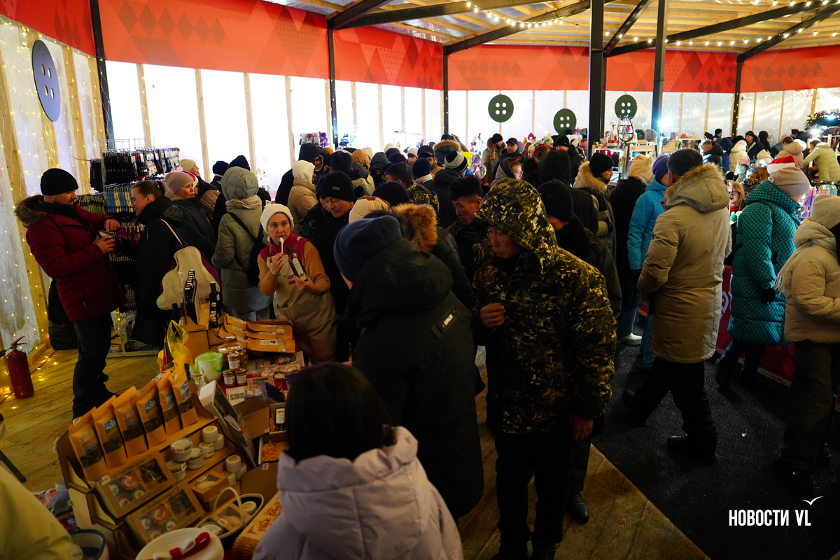Одеться лучше потеплее. На улице холодно и ветер, но Дед Мороз с площади пока не гонит. Погреться можно внутри павильона-ярмарки приморских мастеров. Праздничные гулянья завершатся фейерверком в 22:00. После чего продолжится дискотека.
