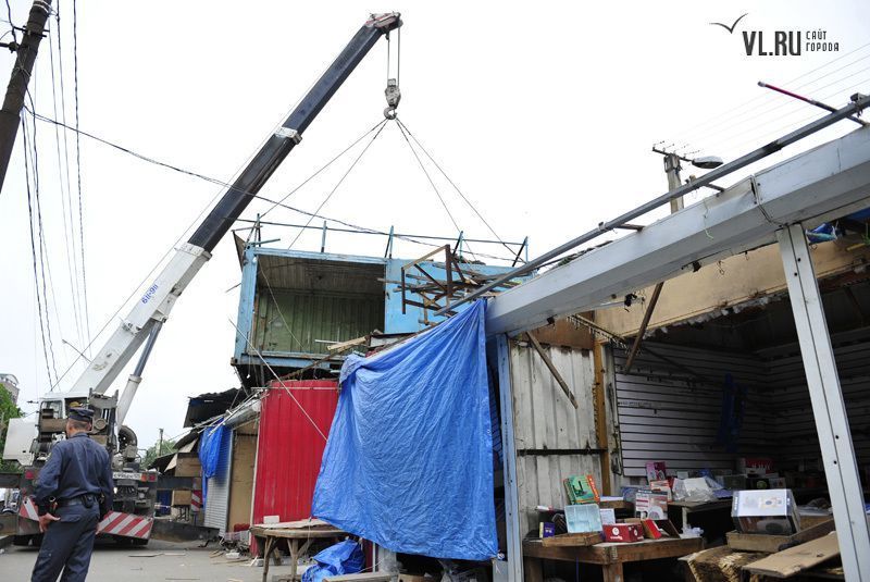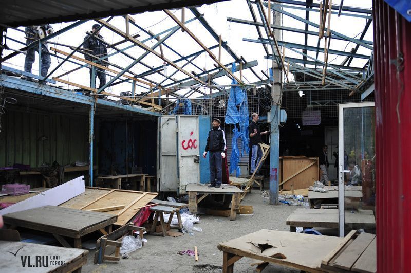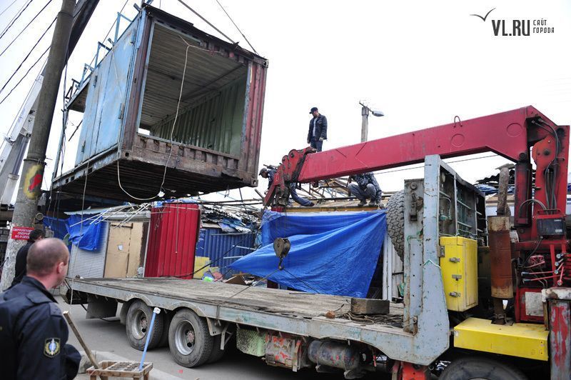 Корреспонденты VL.ru в течение всего дня присутствовали при ликвидации рынка и вели репортаж онлайн. Собственно, сегодняшней целью судебных приставов было не уничтожить рынок, а показать серьезность своих намерений. Было демонтировано 8 контейнеров, которые вывезены на площадку временного хранения.