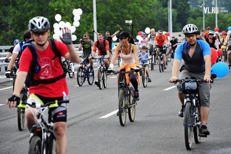 В 12 45 красная ленточка была перерезана и по мосту начали движение велросипедисты. Многие приехали семьями, с детьми. Проехали по мосту на велосипедах и глава администрации Владивостока Игорь Пушкарев с сыном Алексеем. Позже мэр признался, что интерес к велосипедному спорту появился у него благодаря сыну. Правда, покататься удается редко.