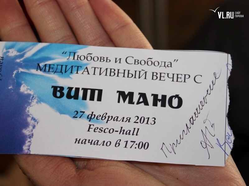 В среду, 27 февраля, во Владивостоке прошел медитативный вечер с Вит Мано «Любовь и свобода». Свами Вит Мано — американец по происхождению, ученик индийского мастера Ошо, экстрасенс, финалист телепрограммы «Битва экстрасенсов — 13», после участия в телевизионном шоу приобрел невероятную популярность в России.
