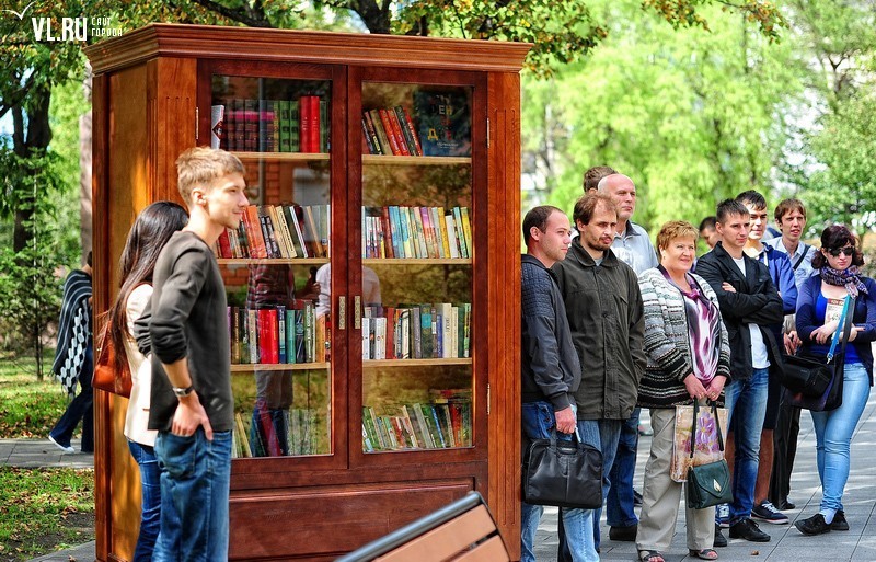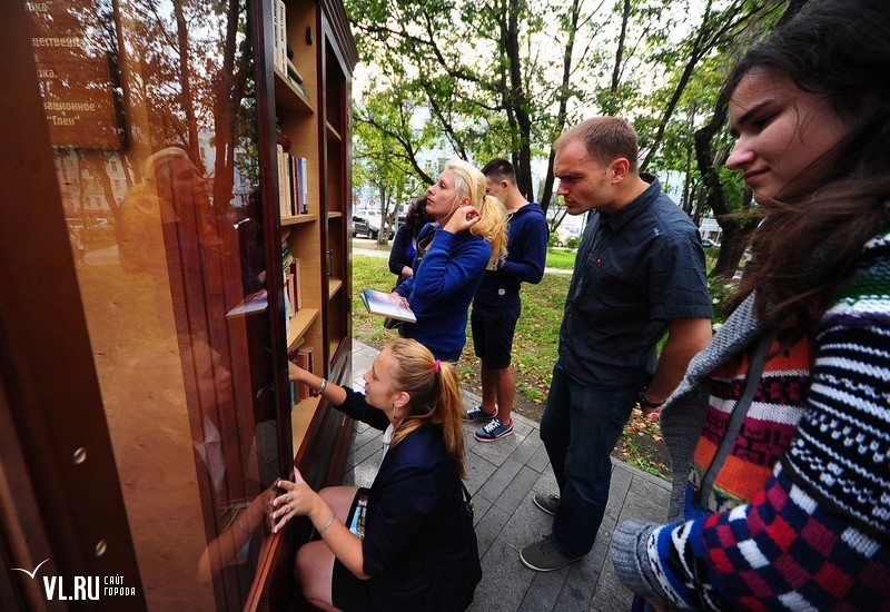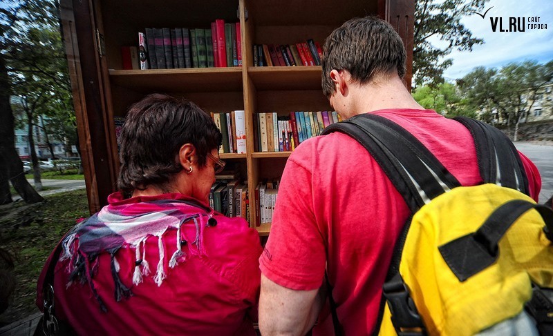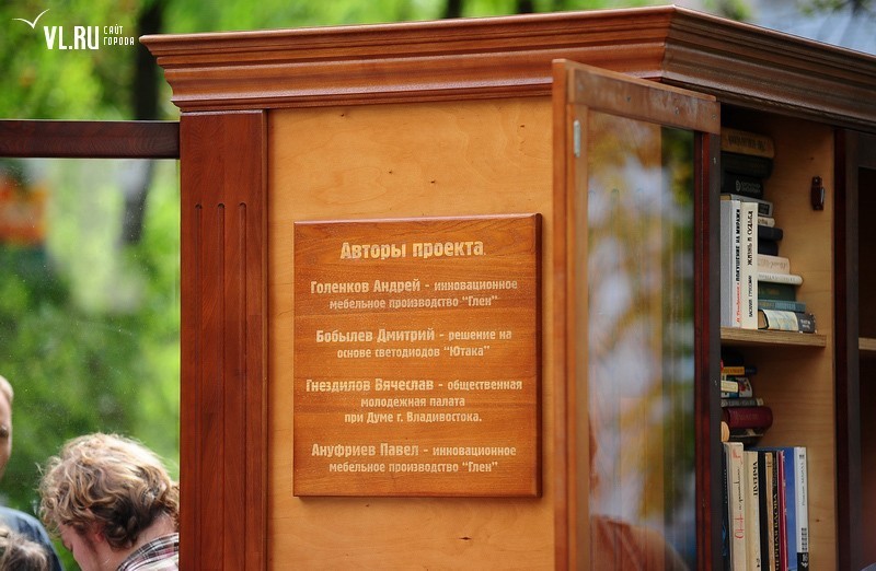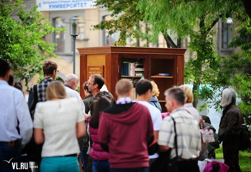 В субботу, 21 сентября, в сквере Суханова состоялось торжественное открытие первого городского уличного книжного шкафа. Идея проекта состоит в том, что каждый житель Владивостока может взять почитать любую понравившуюся ему книгу, а также поделиться своими интересными книгами, оставив их в шкафу.