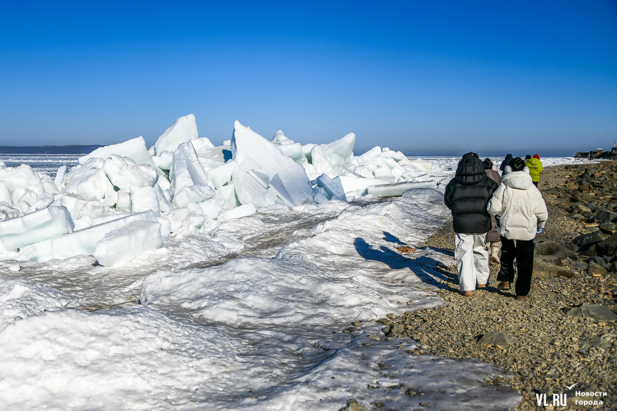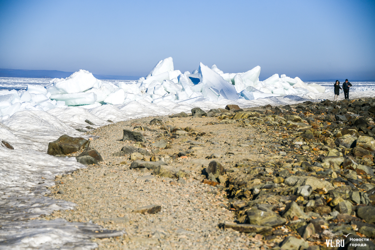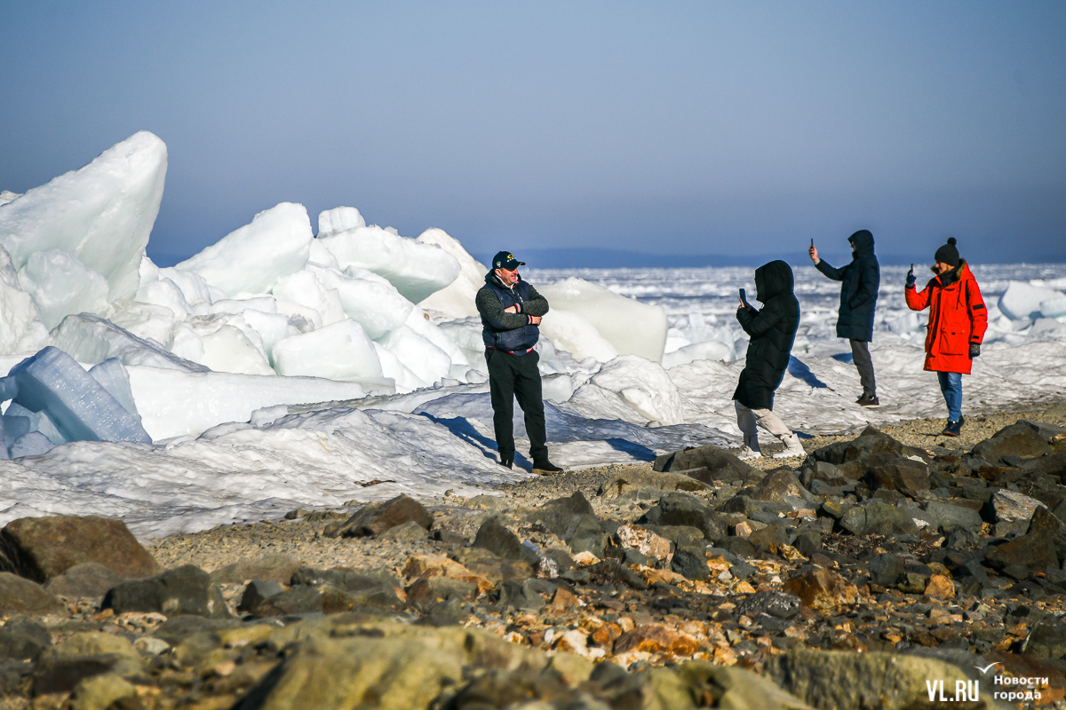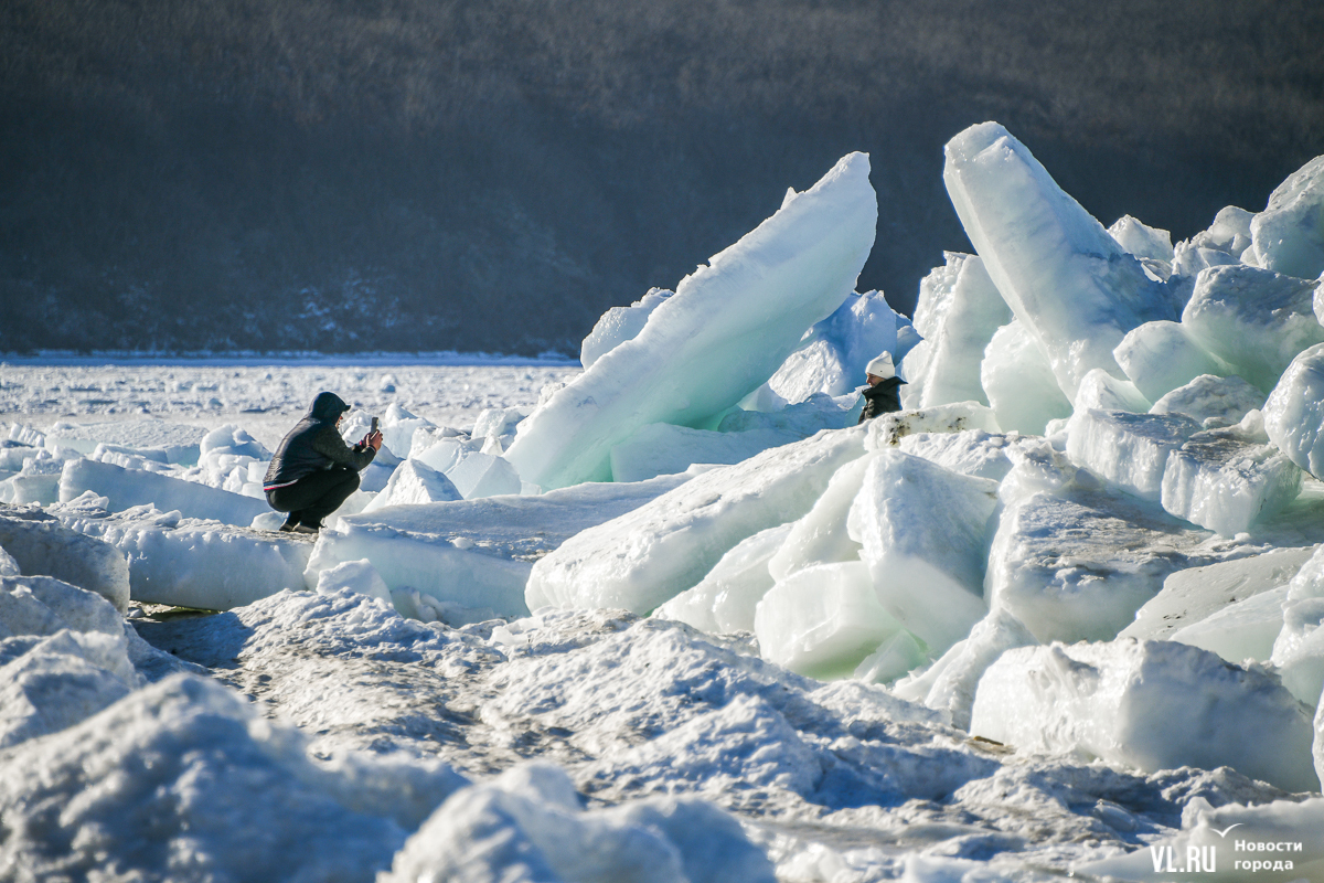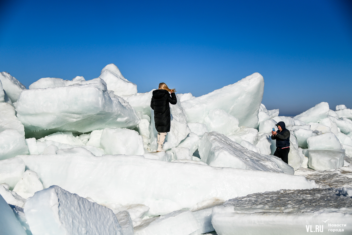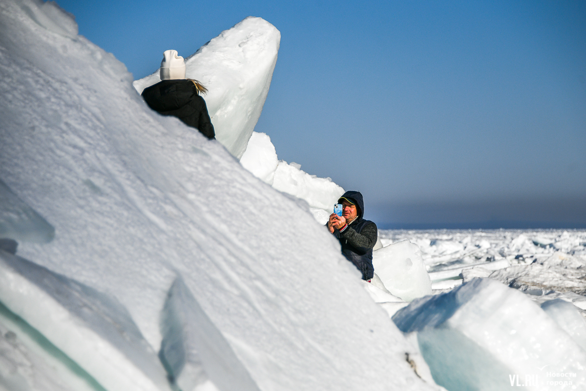 Красота льда притягивает китайских туристов и владивостокцев, которые устраивают фотосессии на их фоне. Правда, сегодня солнце светит очень ярко и отражается от льдин, поэтому часто «модели» щурятся, а их «фотографам» приходится искать более подходящий ракурс. Однако, если немного приноровиться, можно уйти с прекрасными кадрами с «Северного полюса».