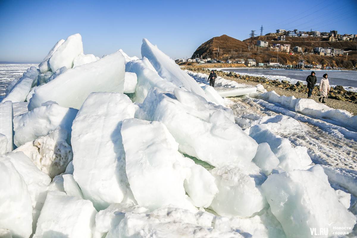 Ледяные торосы раскинулись на мысе Токаревского – жители Владивостока и туристы устраивают фотосессии на их фоне. Ледники появляются здесь ежегодно из-за сильного ветра и морозов. Однако в этом году некоторые льдины гораздо выше человеческого роста, поэтому оказывают особый эффект на зрителей. Фотограф Новостей VL.ru запечатлел величественные глыбы, освещённые ярким солнцем.