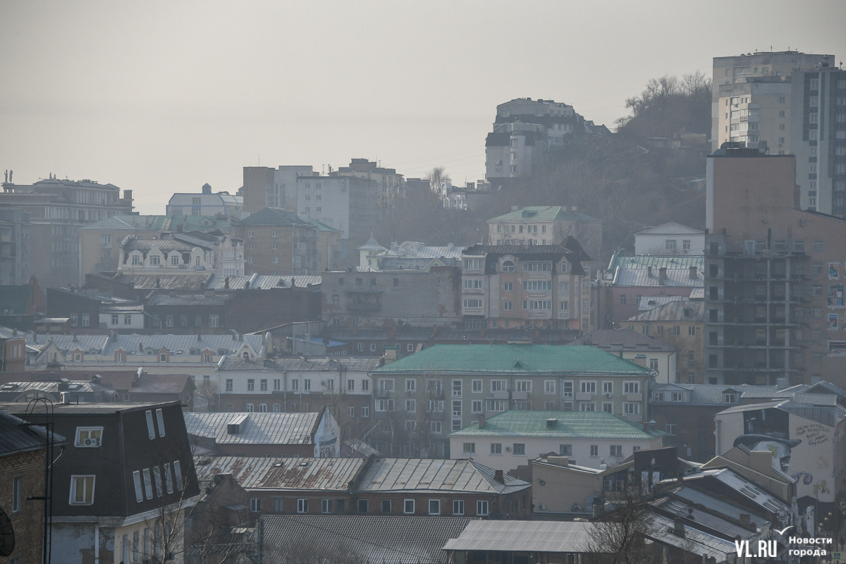 В центральной части города в такую погоду мы рекомендуем зайти на Почтовую сопку за Университетом прокуратуры – оттуда открывается отличный вид. Несмотря на сизую дымку, всегда притягивает к себе взгляд величественный Золотой мост. А на той стороне Золотого Рога чётко виднеются трубы ТЭЦ-2, которые как будто бы вносят свой дополнительный вклад в создание «тумана».