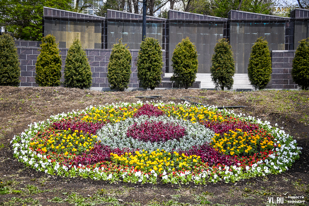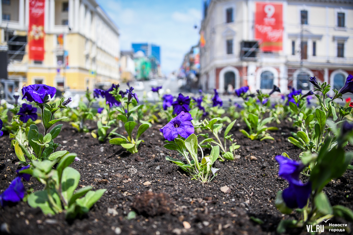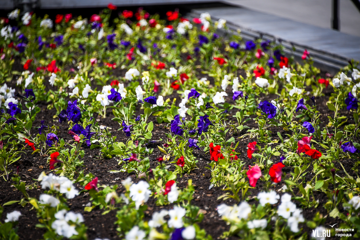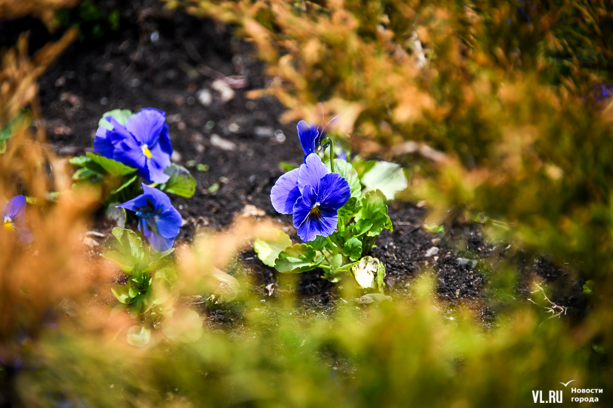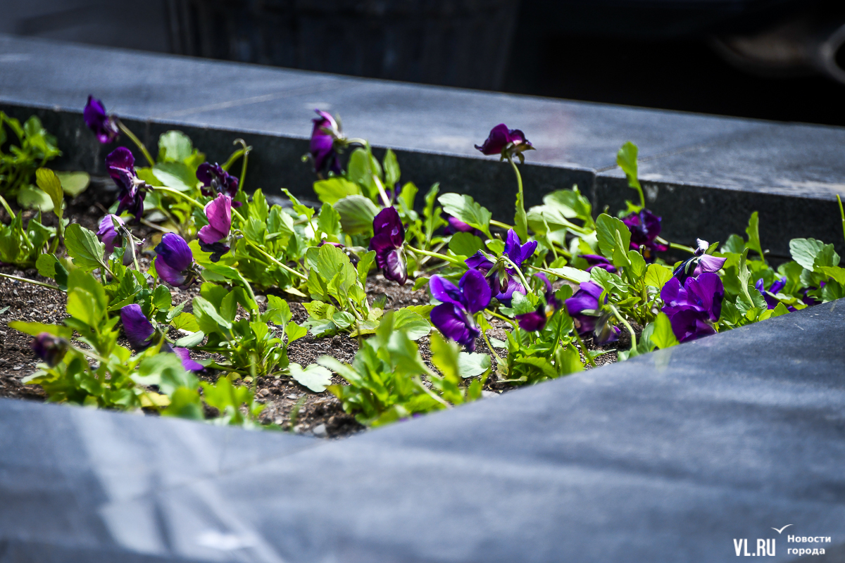 В центре Владивостока зацвели фиалки, петунии и львиный зев. Их высадили на клумбах около памятника Борцам за власть Советов, на улицах Адмирала Фокина и Светланской. А около погрануправления сейчас цветут красные тюльпаны.