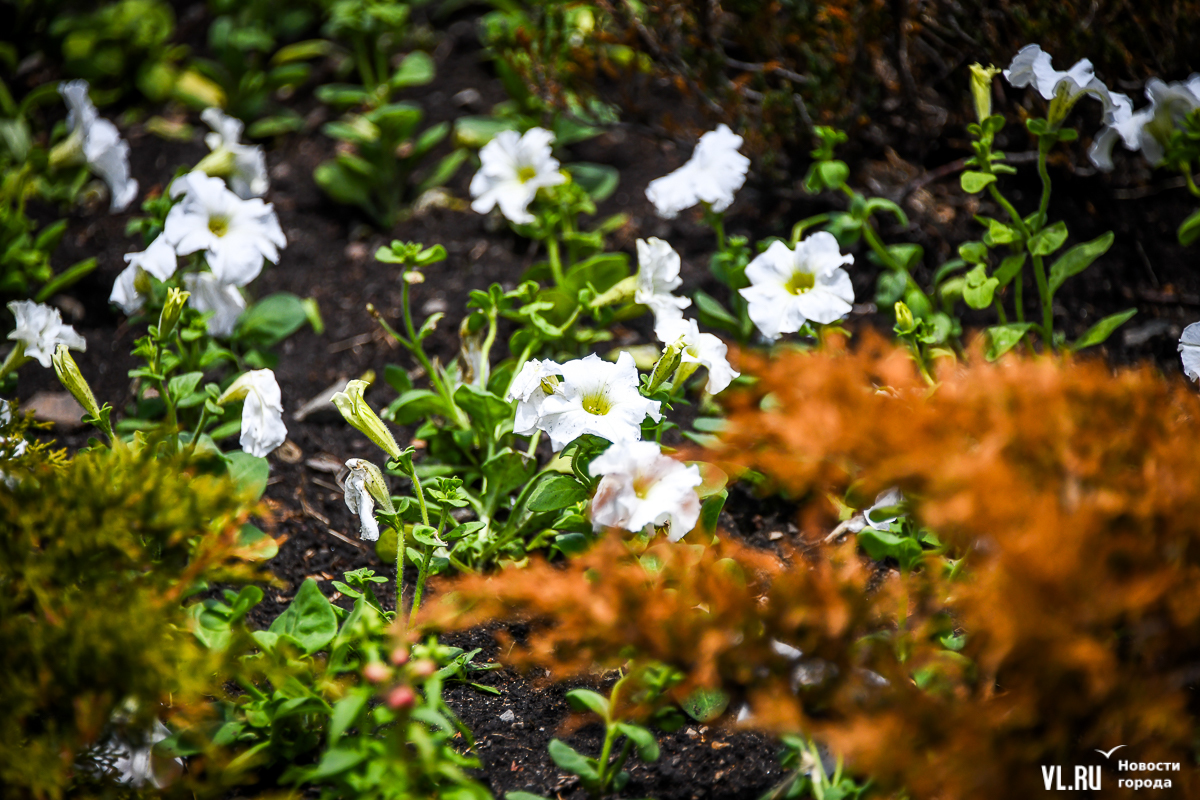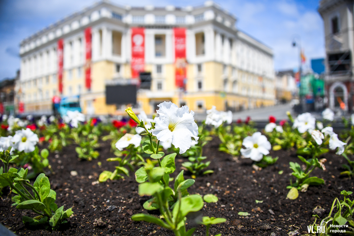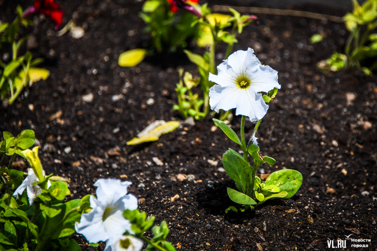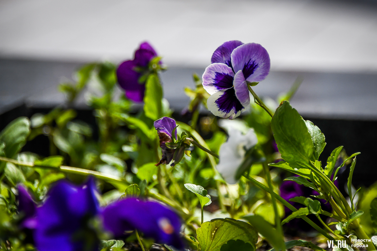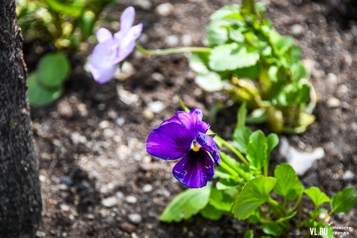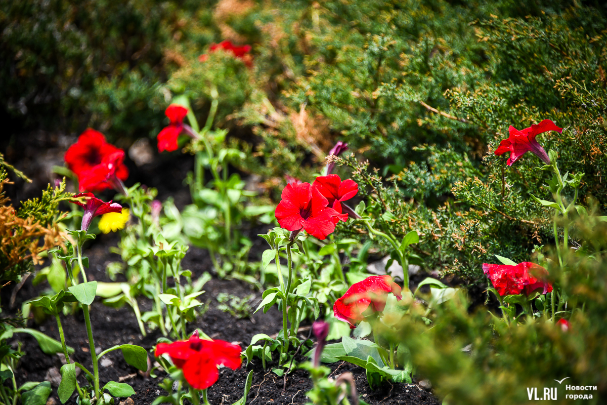 В центре Владивостока зацвели фиалки, петунии и львиный зев. Их высадили на клумбах около памятника Борцам за власть Советов, на улицах Адмирала Фокина и Светланской. А около погрануправления сейчас цветут красные тюльпаны.