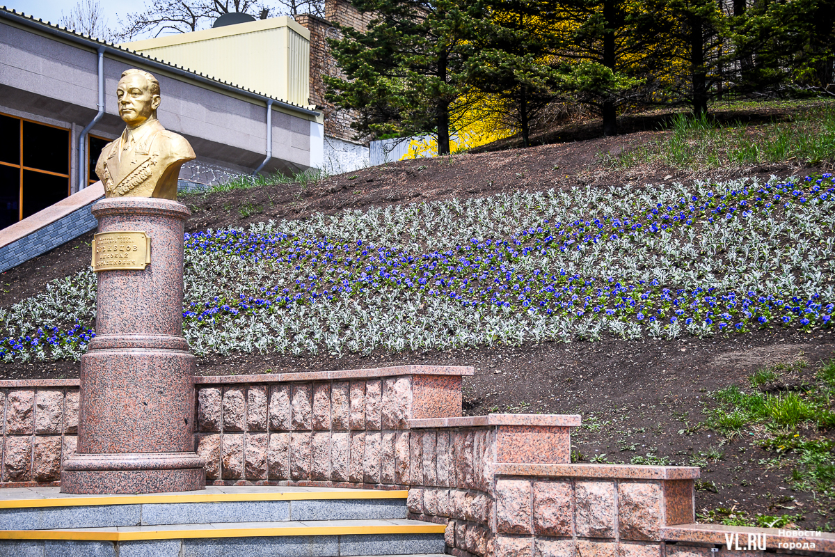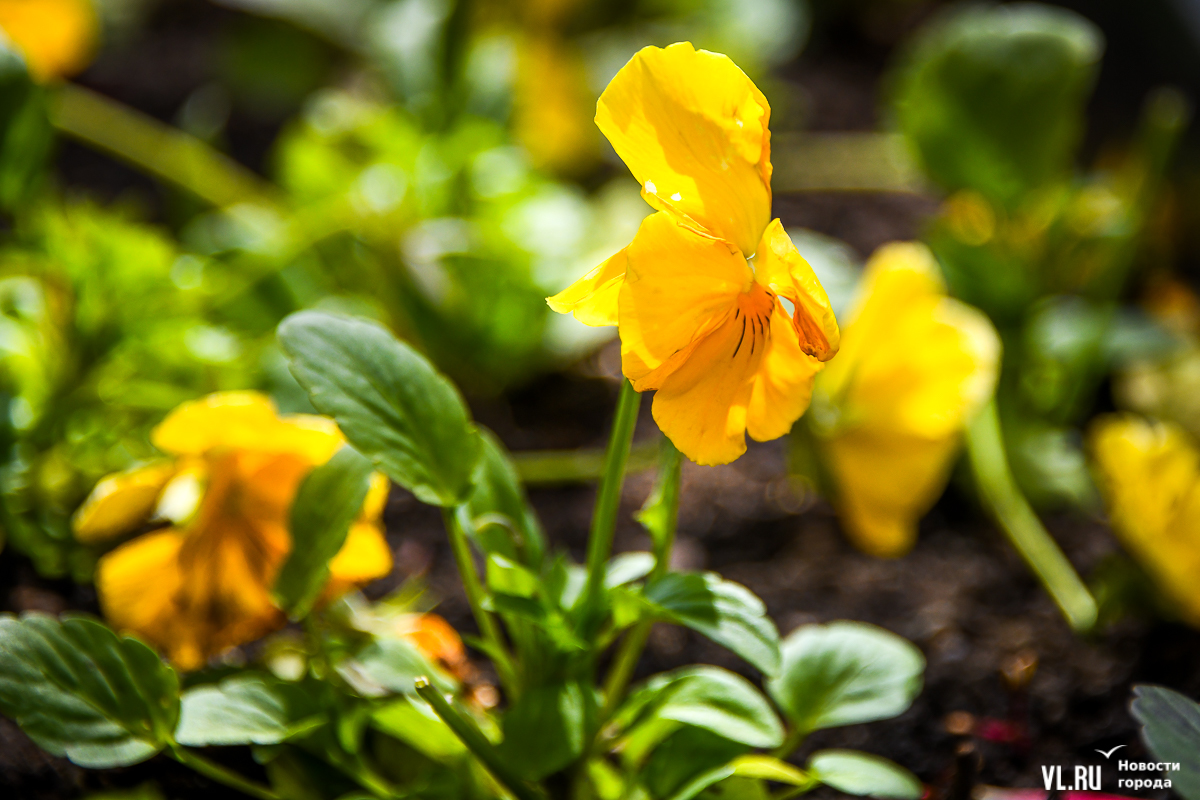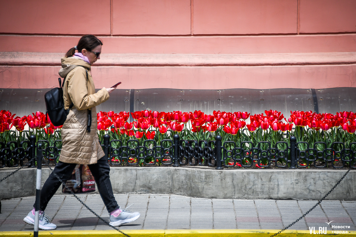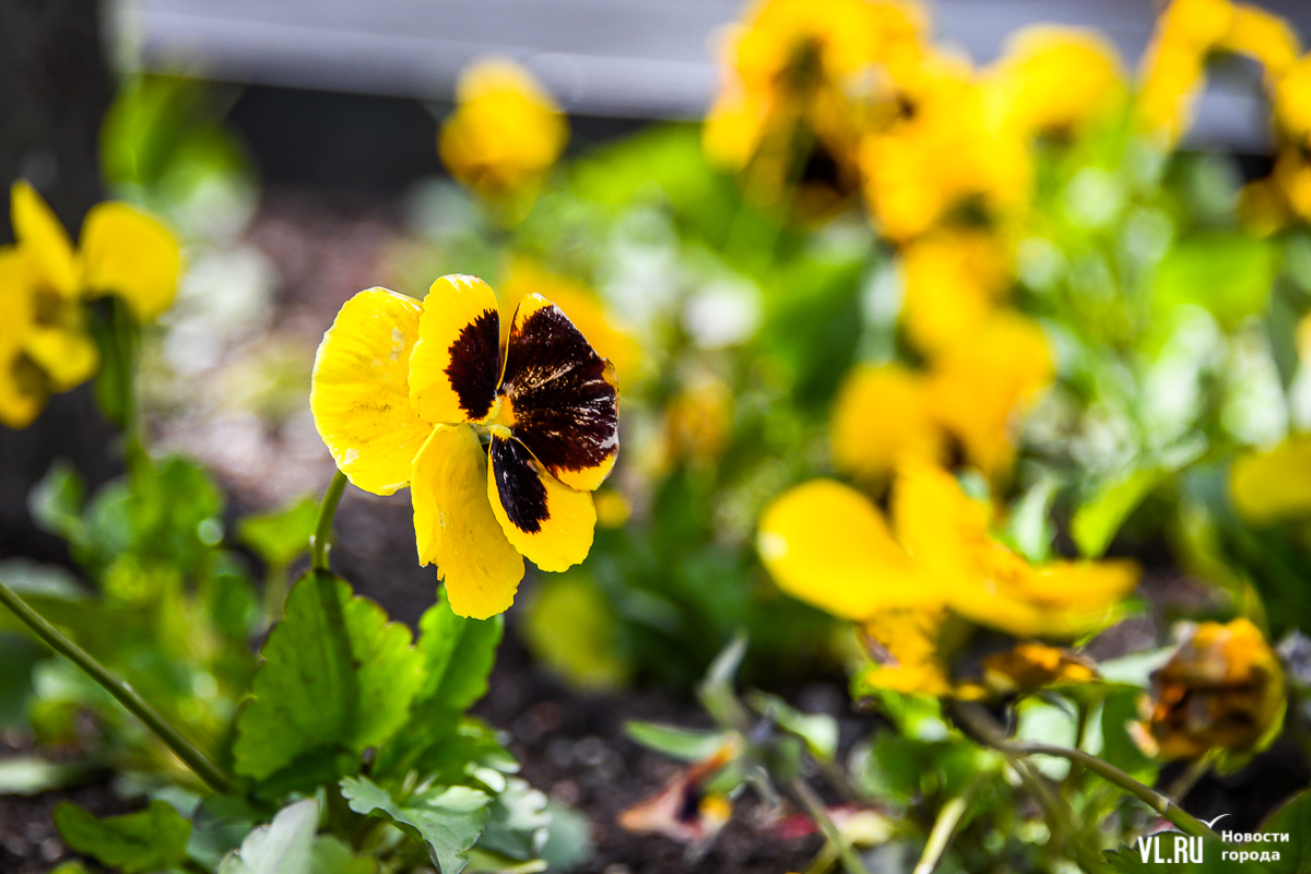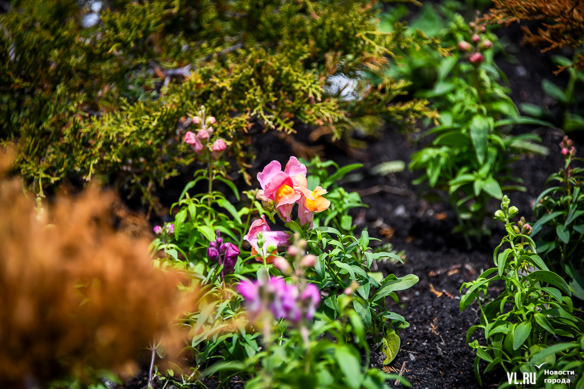 В центре Владивостока зацвели фиалки, петунии и львиный зев. Их высадили на клумбах около памятника Борцам за власть Советов, на улицах Адмирала Фокина и Светланской. А около погрануправления сейчас цветут красные тюльпаны.