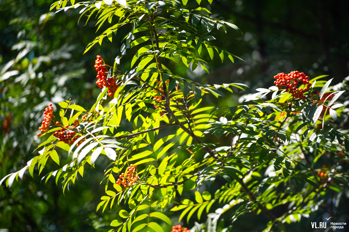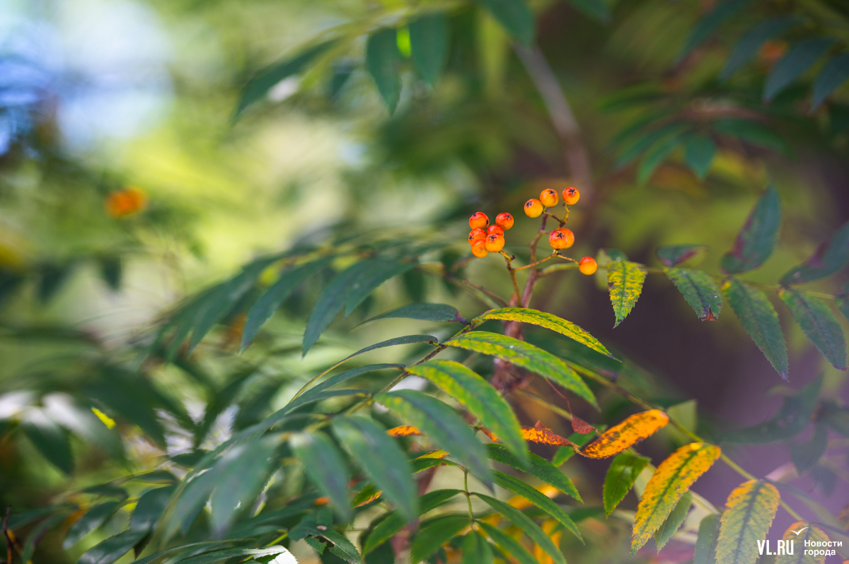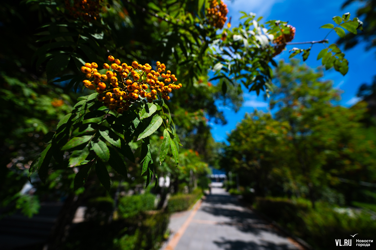 Жёлтый лист над бульварами Владивостока не летает, да и рябины у нас не то чтобы горят кострами. Но и в нашем городе 3 сентября по-своему красиво. Над дорожками Театрального сквера, где сегодня побывал фотограф Новостей VL.ru, склонились оранжевые гроздья и зелёная, едва порыжевшая листва.