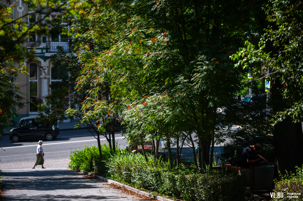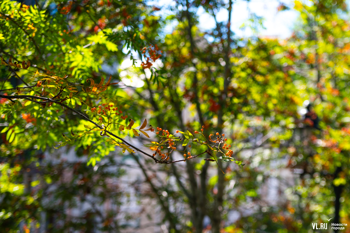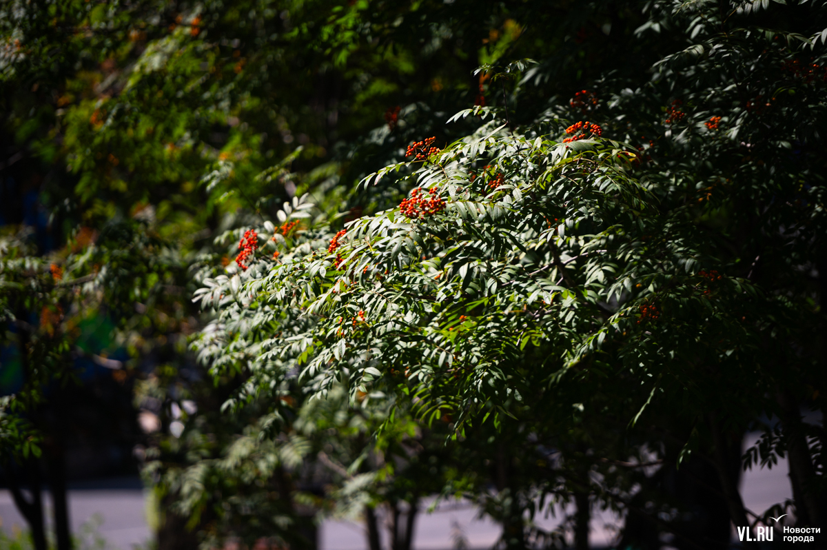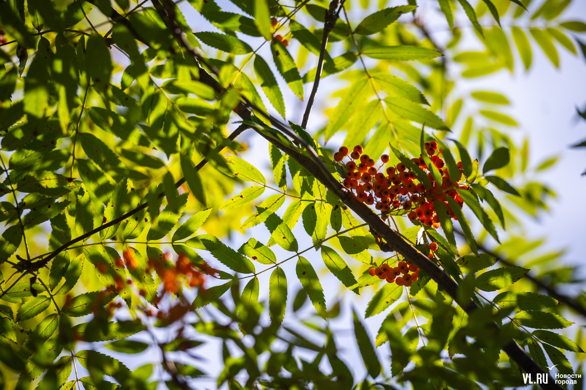 Жёлтый лист над бульварами Владивостока не летает, да и рябины у нас не то чтобы горят кострами. Но и в нашем городе 3 сентября по-своему красиво. Над дорожками Театрального сквера, где сегодня побывал фотограф Новостей VL.ru, склонились оранжевые гроздья и зелёная, едва порыжевшая листва.