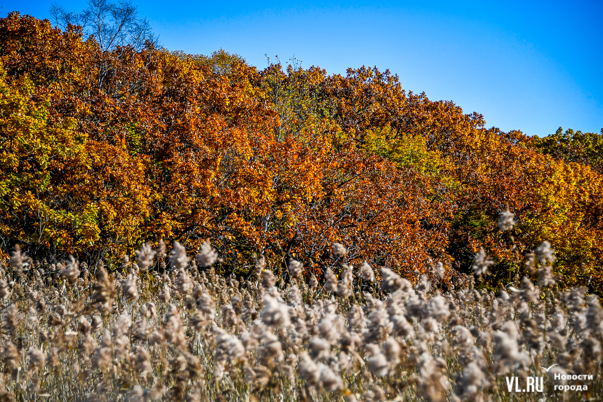 Из-за географического положения золотая осень в Сихотэ-Алинский заповедник приходит немного раньше, чем в южное Приморье. И пока в пригороде Владивостока деревья только начинают окрашиваться в осенние цвета, на севере края лес уже радует своей красотой.