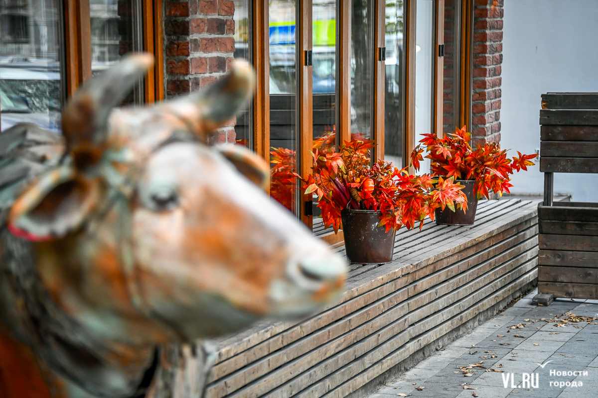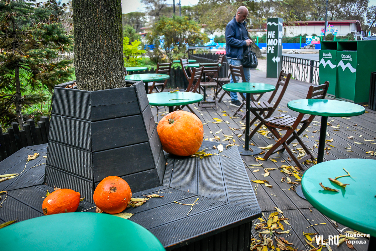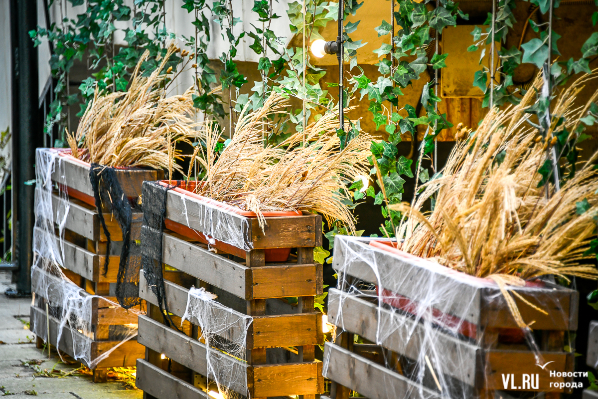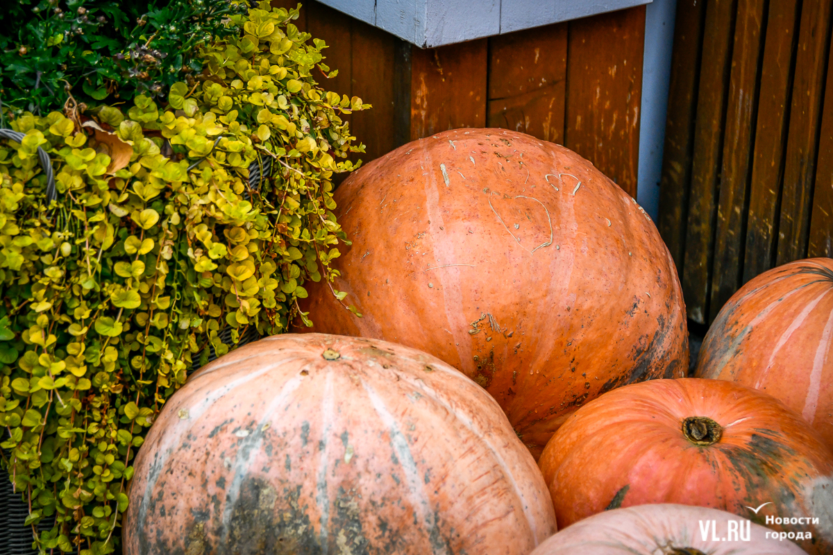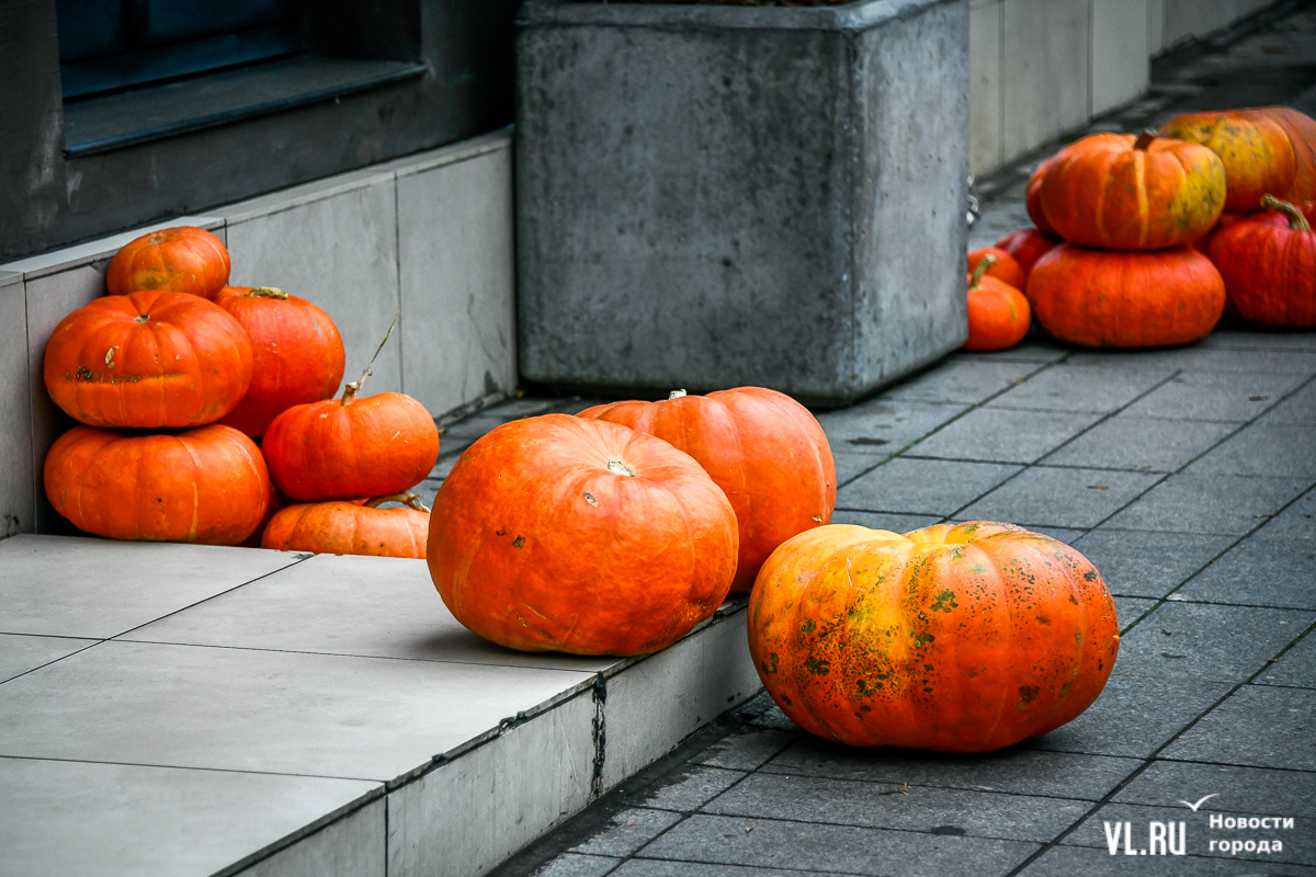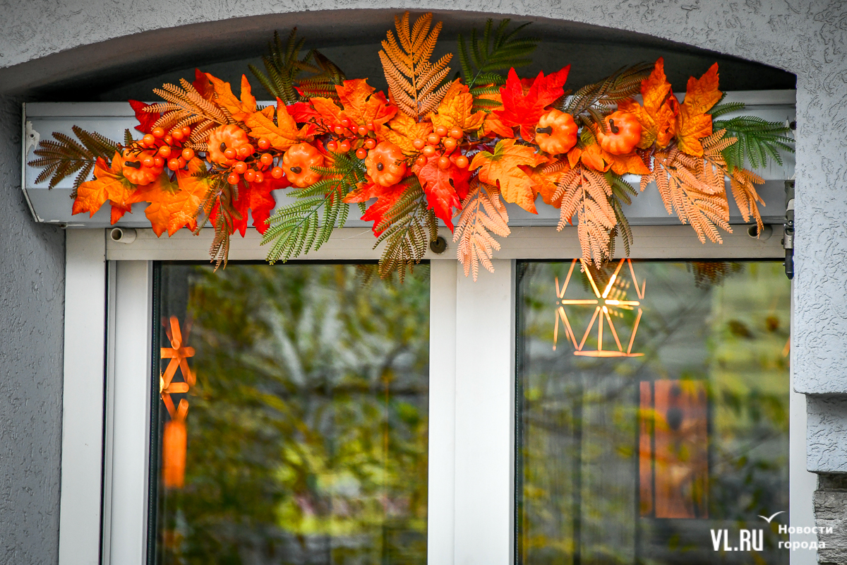 Костры рябин давно отгорели, а календарь стремительно переворачивается к зиме – ярких красок становится меньше, и владельцы различных заведений во Владивостоке восполняют этот пробел. Кто-то украшает свои входные группы цветами и красивым сухостоем, кто-то привёз, кажется, целый грузовик тыкв. «Хэллоуинскую» символику уже почти не используют, отдавая предпочтение просто осеннему убранству.