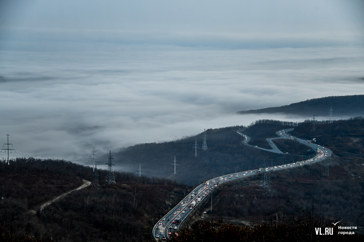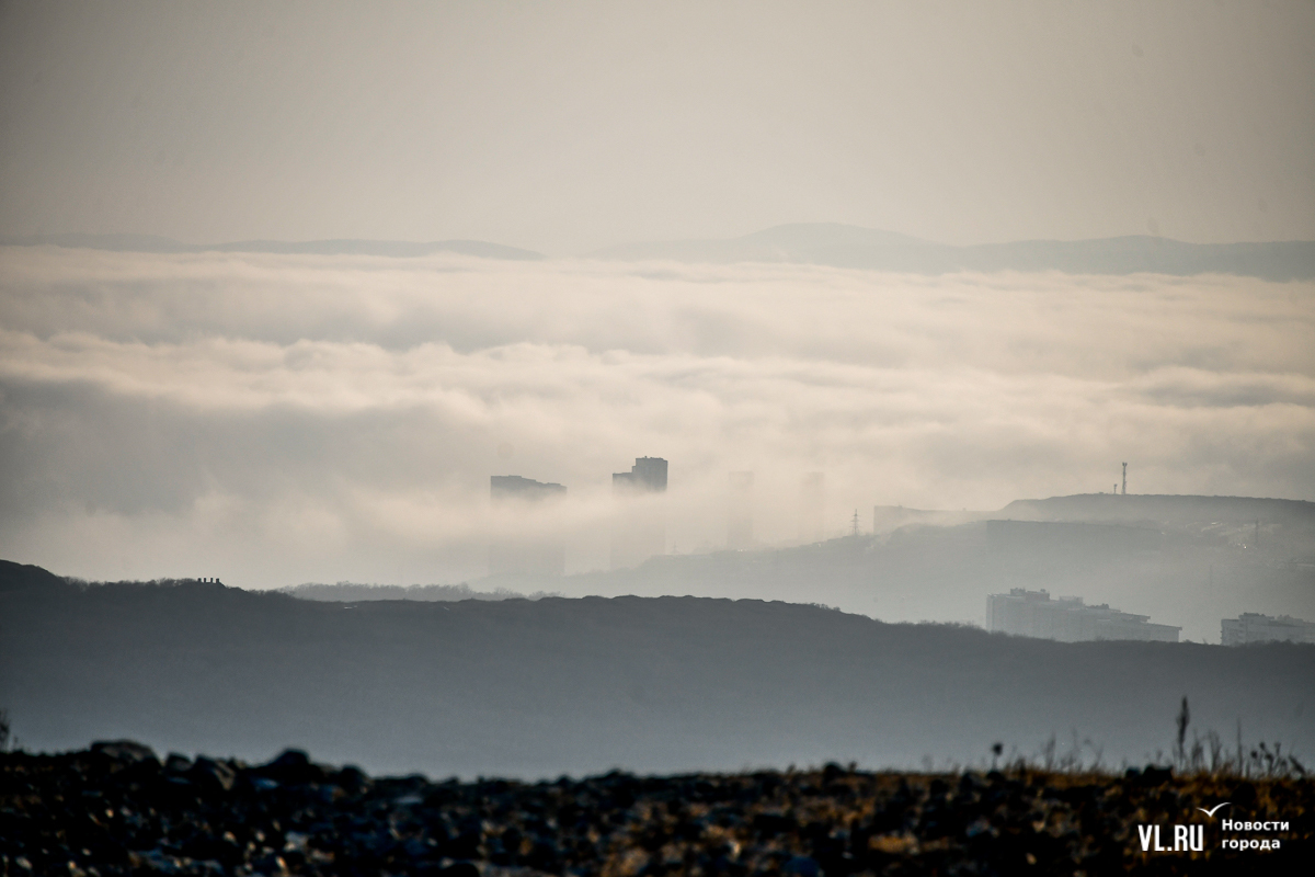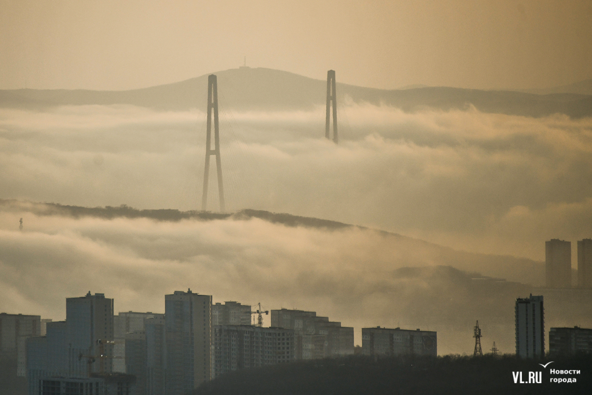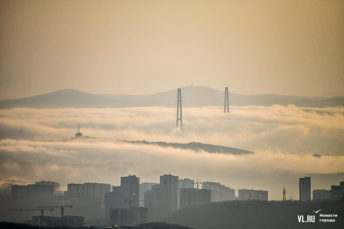 Этот вечер фотограф Новостей VL.ru провёл на сопке Попова, откуда открывается вид на Владивосток и на оба моста. Место находится в районе объездной трассы и форта № 3. Наш коллега приехал туда около 16:30, чтобы дождаться заката и снять туман в лучах заходящего солнца. В это время почти весь город был в белом. Самый густой туман собрался над Уссурийским заливом, Босфором Восточным, Патроклом и Русским мостом. Но чем ближе становилось к закату, тем быстрее он рассеивался. К вечеру стало видно полуостров Песчаный на другой стороне Амурского залива, море стало золотым, а туман остался только в низинах. Когда солнце ушло за горизонт, тёплые краски погасли, небо стало лиловым и как будто напомнило, что начинается самый холодный месяц осени.