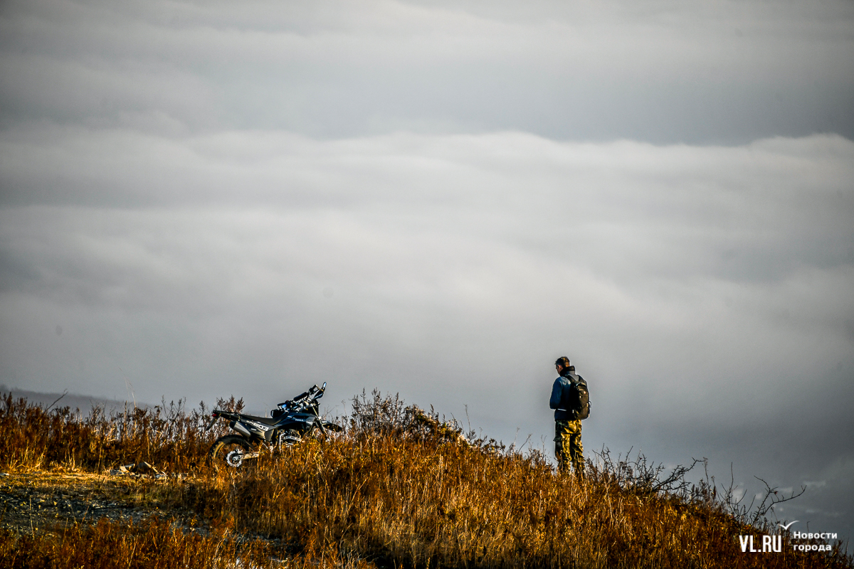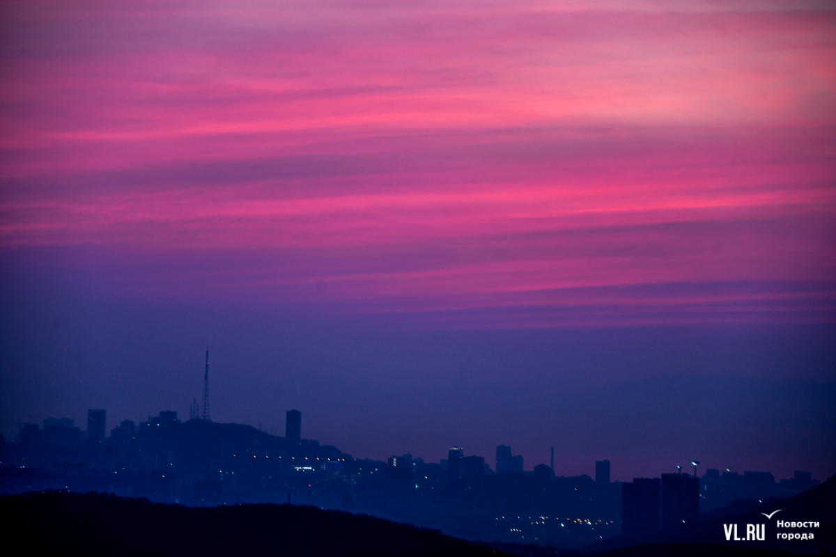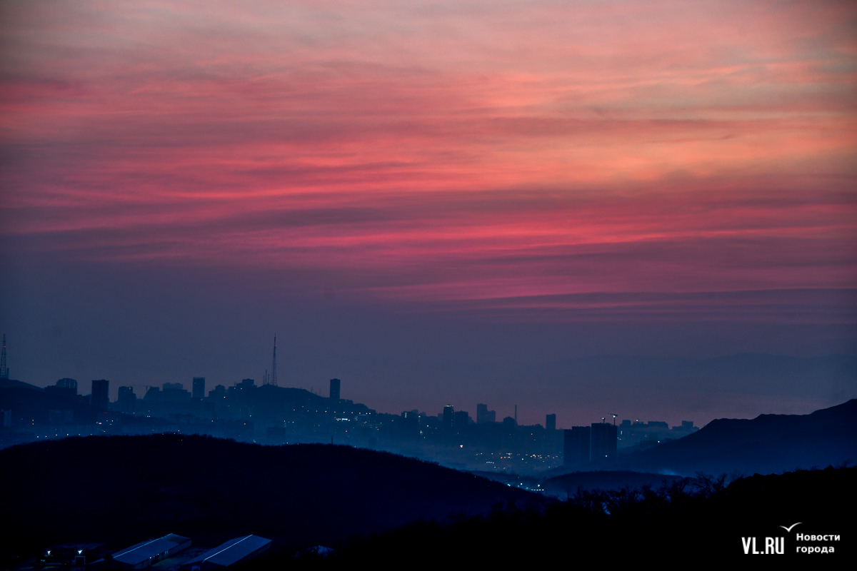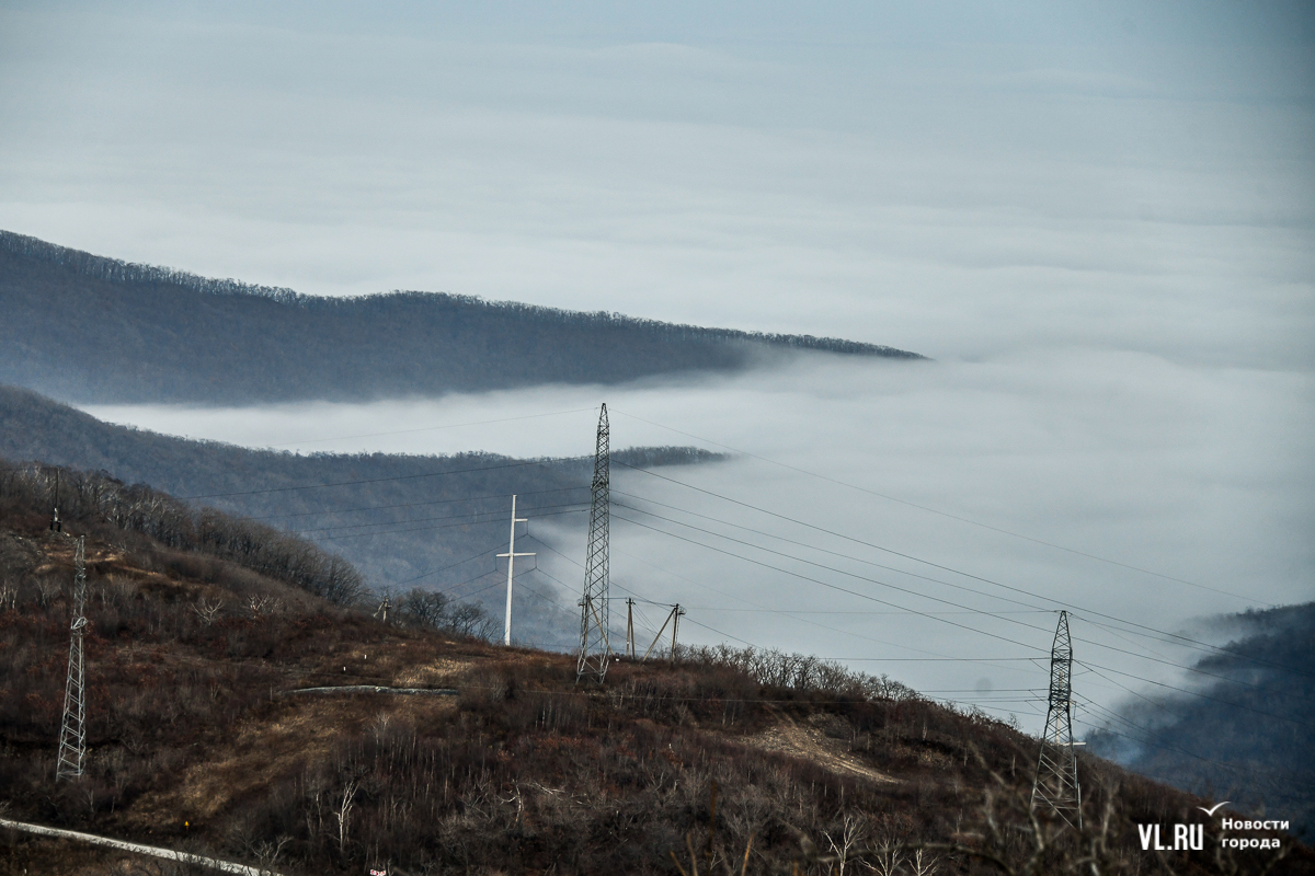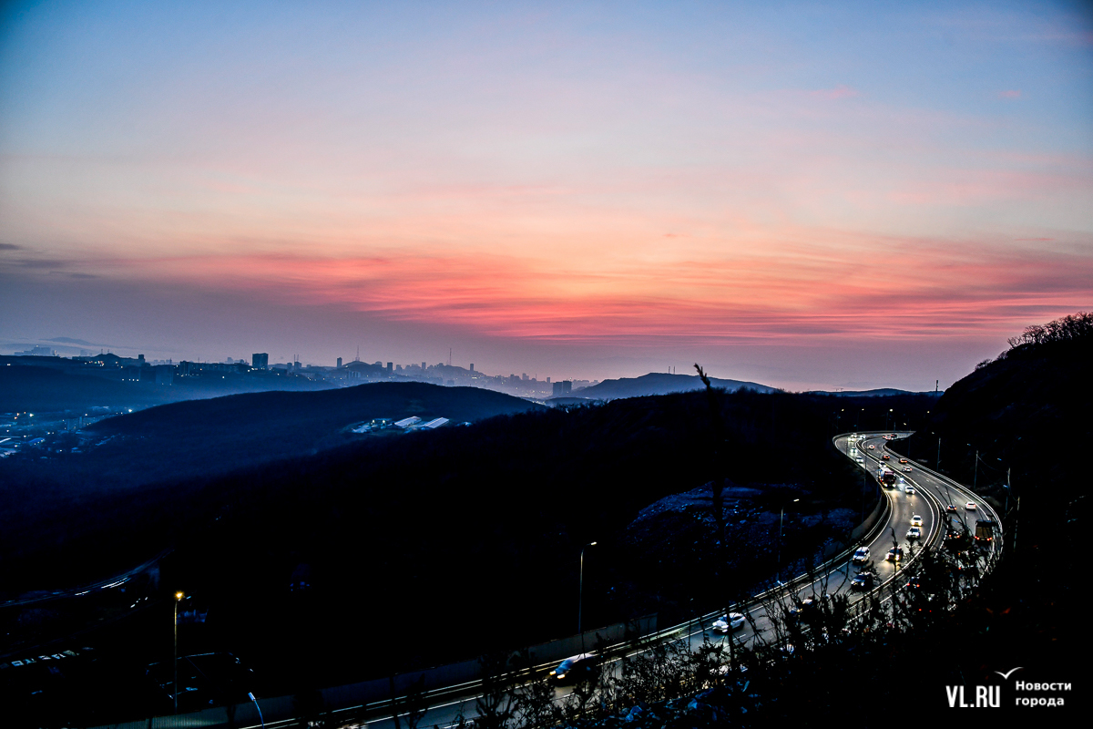 Этот вечер фотограф Новостей VL.ru провёл на сопке Попова, откуда открывается вид на Владивосток и на оба моста. Место находится в районе объездной трассы и форта № 3. Наш коллега приехал туда около 16:30, чтобы дождаться заката и снять туман в лучах заходящего солнца. В это время почти весь город был в белом. Самый густой туман собрался над Уссурийским заливом, Босфором Восточным, Патроклом и Русским мостом. Но чем ближе становилось к закату, тем быстрее он рассеивался. К вечеру стало видно полуостров Песчаный на другой стороне Амурского залива, море стало золотым, а туман остался только в низинах. Когда солнце ушло за горизонт, тёплые краски погасли, небо стало лиловым и как будто напомнило, что начинается самый холодный месяц осени.
