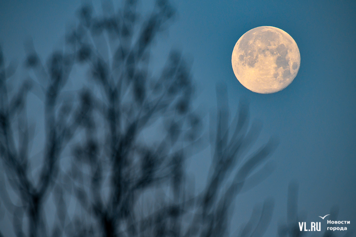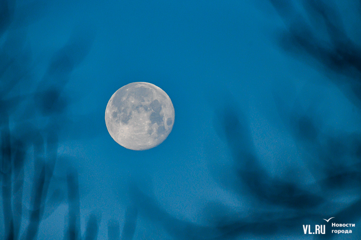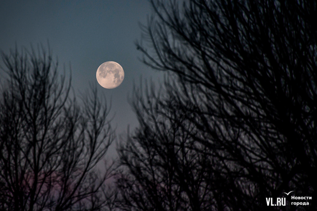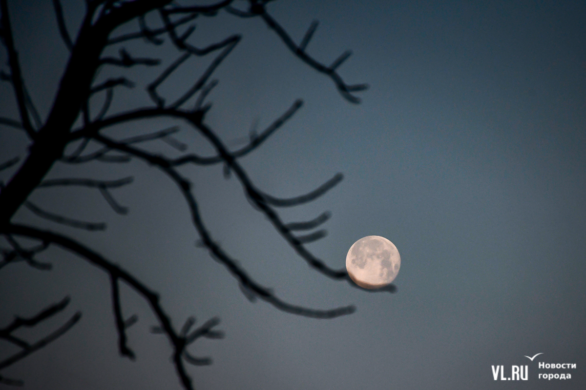 Первое полнолуние в новом году можно было наблюдать во Владивостоке в ночь на 15 января. Согласно астрономическим прогнозам, наибольшую величину и яркость Луна приобрела в 01:27 по московскому времени. В нашем городе в это время утро и рассвет, но небесное тело всё ещё было видно на небосводе.