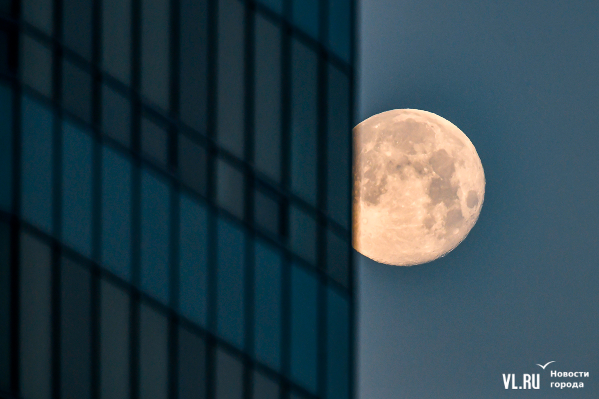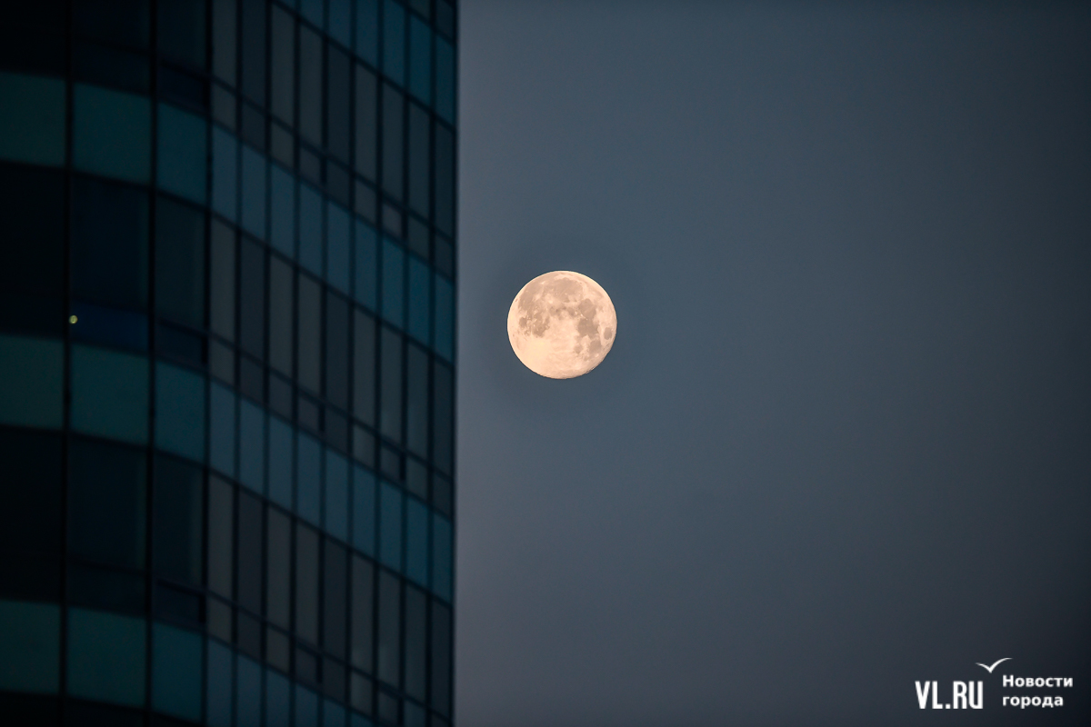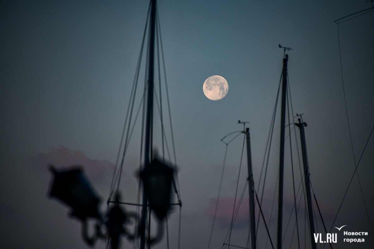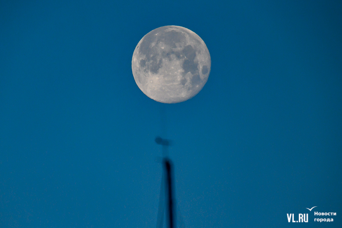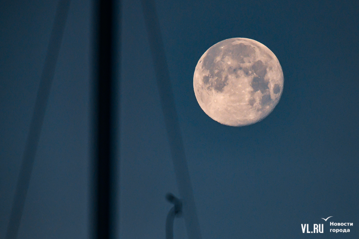 Первое полнолуние в новом году можно было наблюдать во Владивостоке в ночь на 15 января. Согласно астрономическим прогнозам, наибольшую величину и яркость Луна приобрела в 01:27 по московскому времени. В нашем городе в это время утро и рассвет, но небесное тело всё ещё было видно на небосводе.