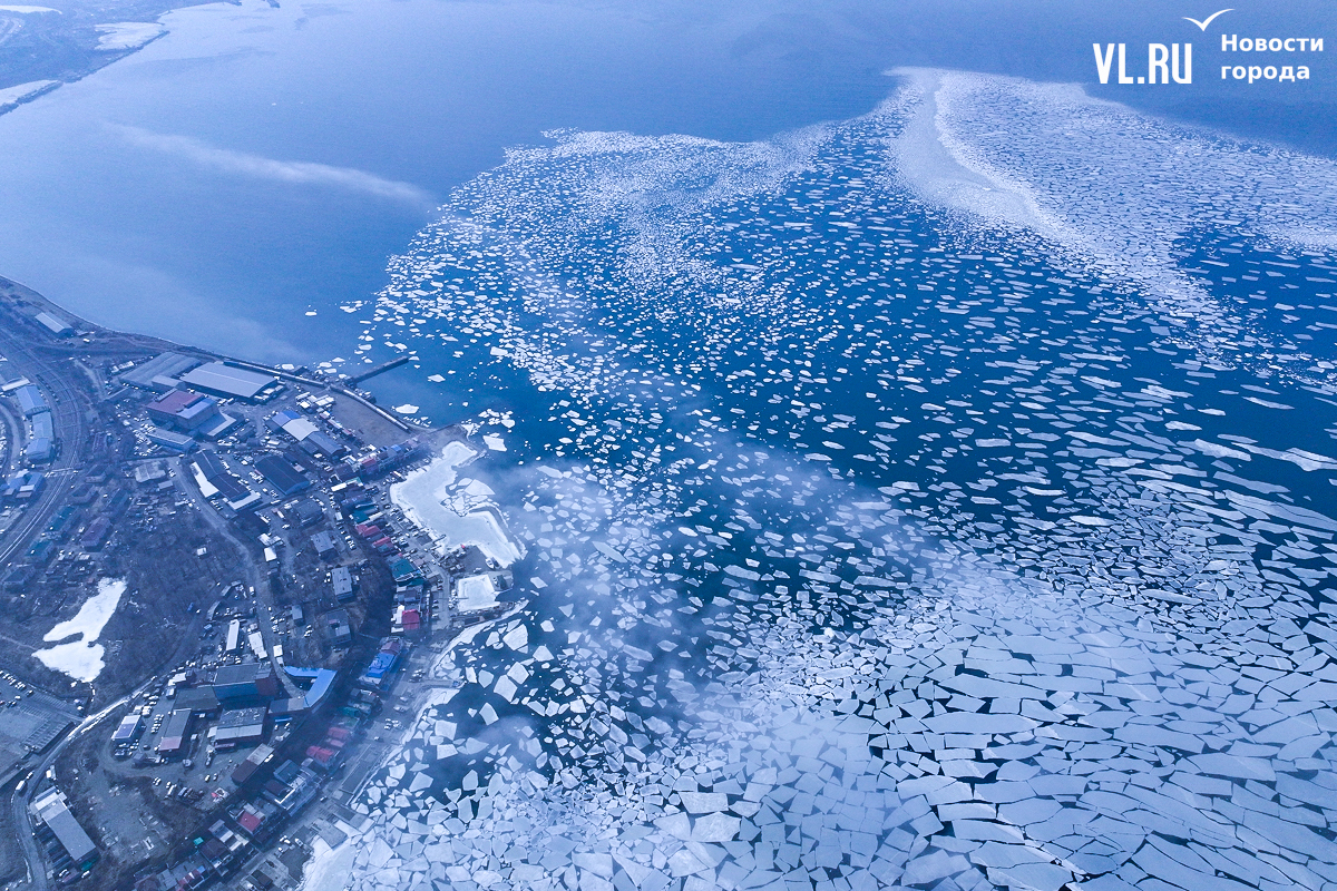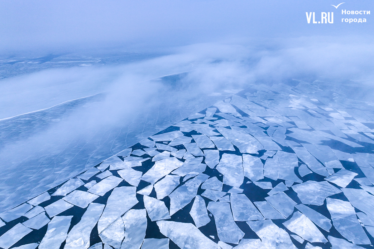 Наверняка каждый из жителей Владивостока хоть раз видел мраморно-мозаичный пол – такие были в школах, больницах, на заводах. Сегодня такую мраморную мозаику напоминает Амурский залив. Под воздействием ветра и высоких температур море постепенно освобождается ото льда, разбивая единое замёрзшее поле на сотни мелких льдин, создавая на чистой синей воде такой образ.