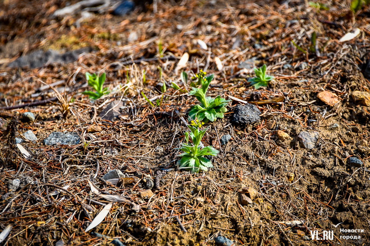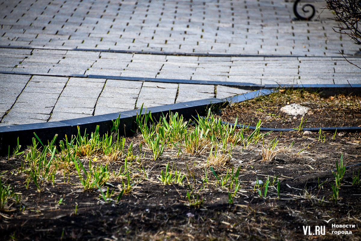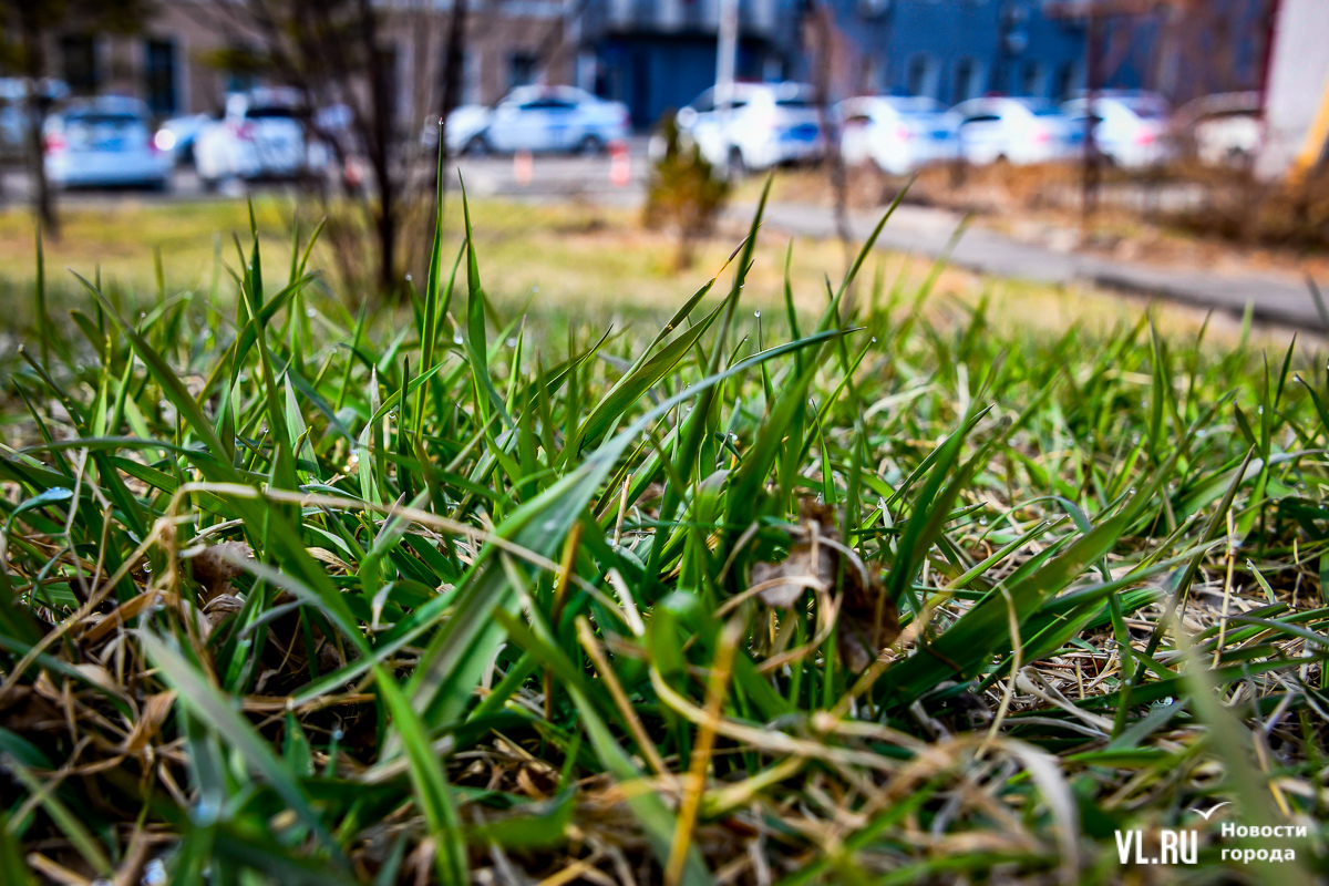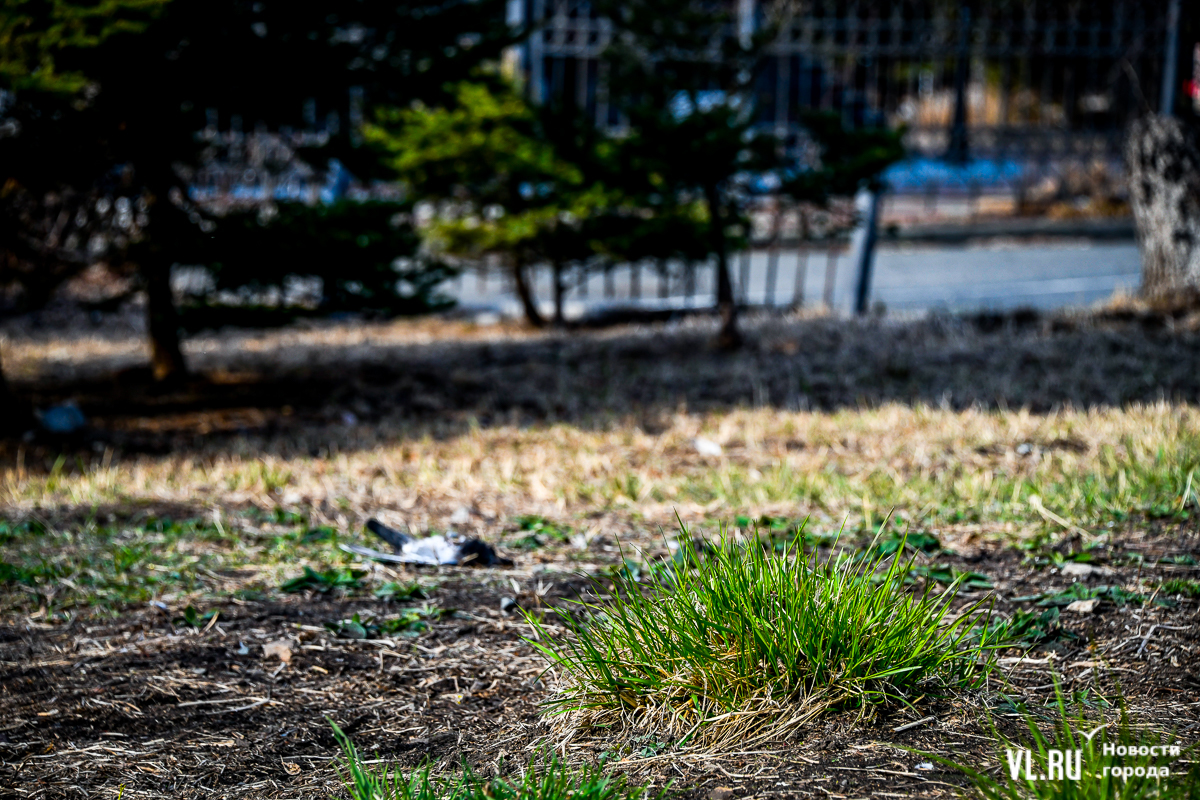 Во Владивостоке весна вступает в свои права, даже ночью столбики термометров уже поднимаются выше нуля. На улицах уже появилась первая свежая зелень, среди которой уже проглядывают яркие жёлтые шарики одуванчиков.