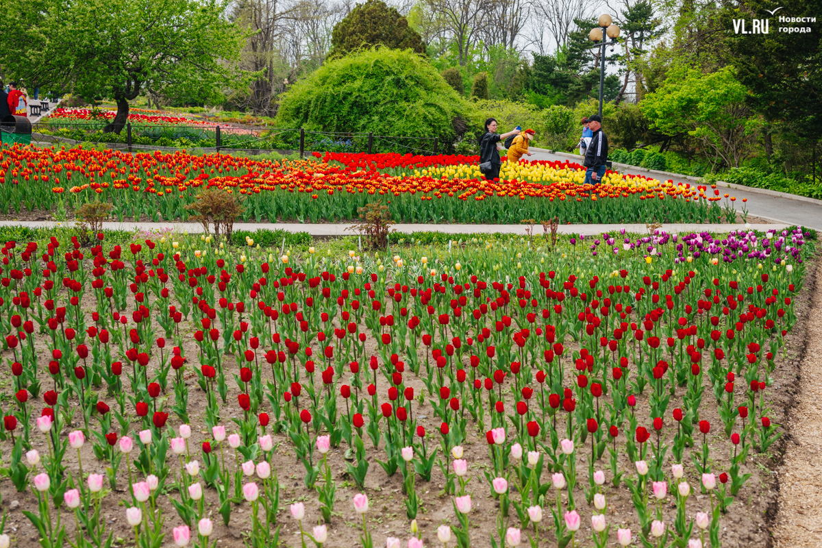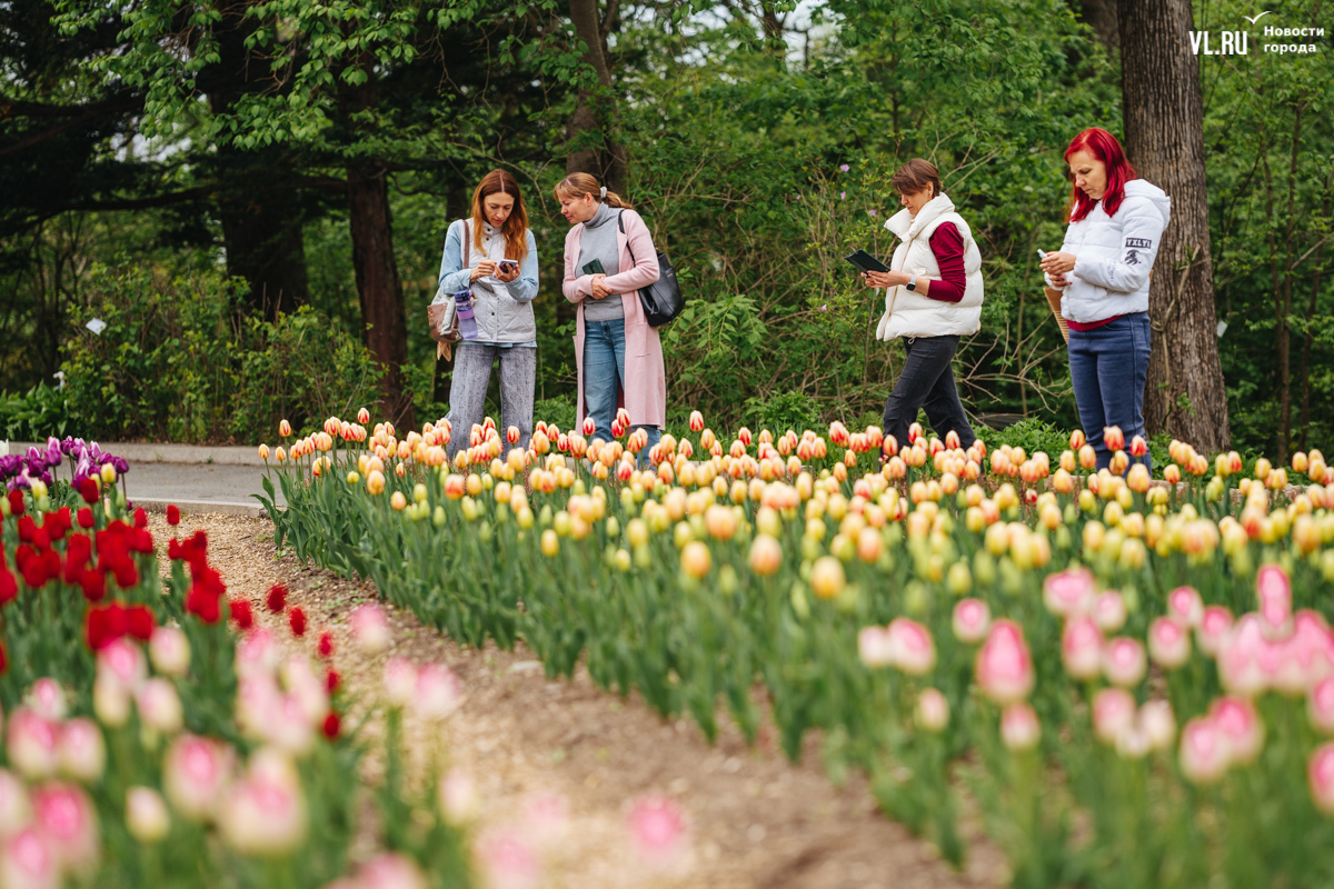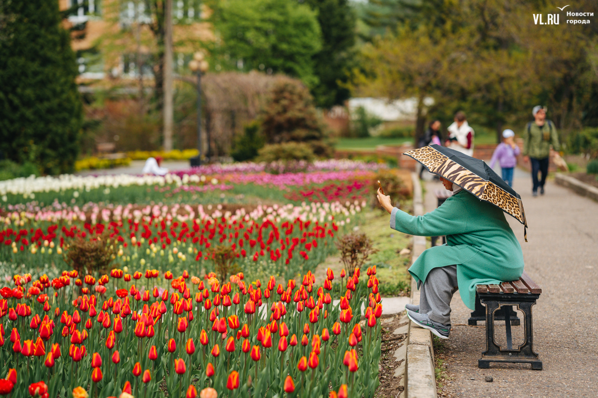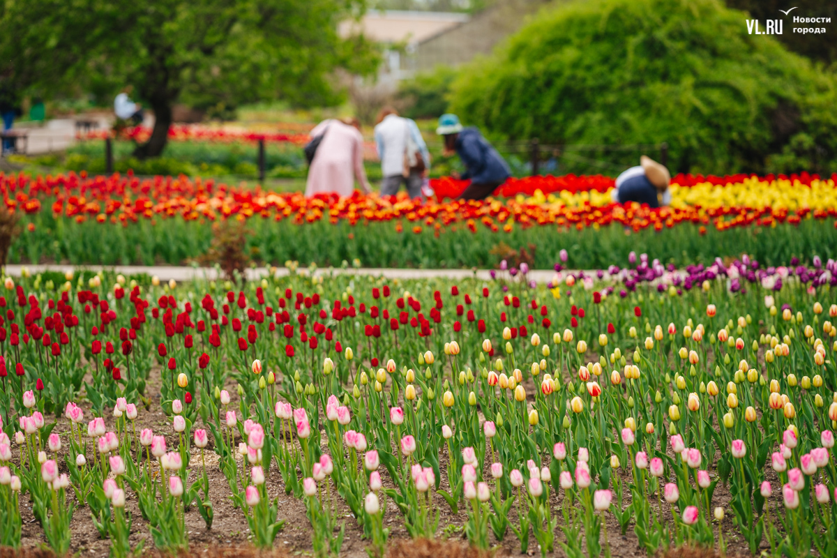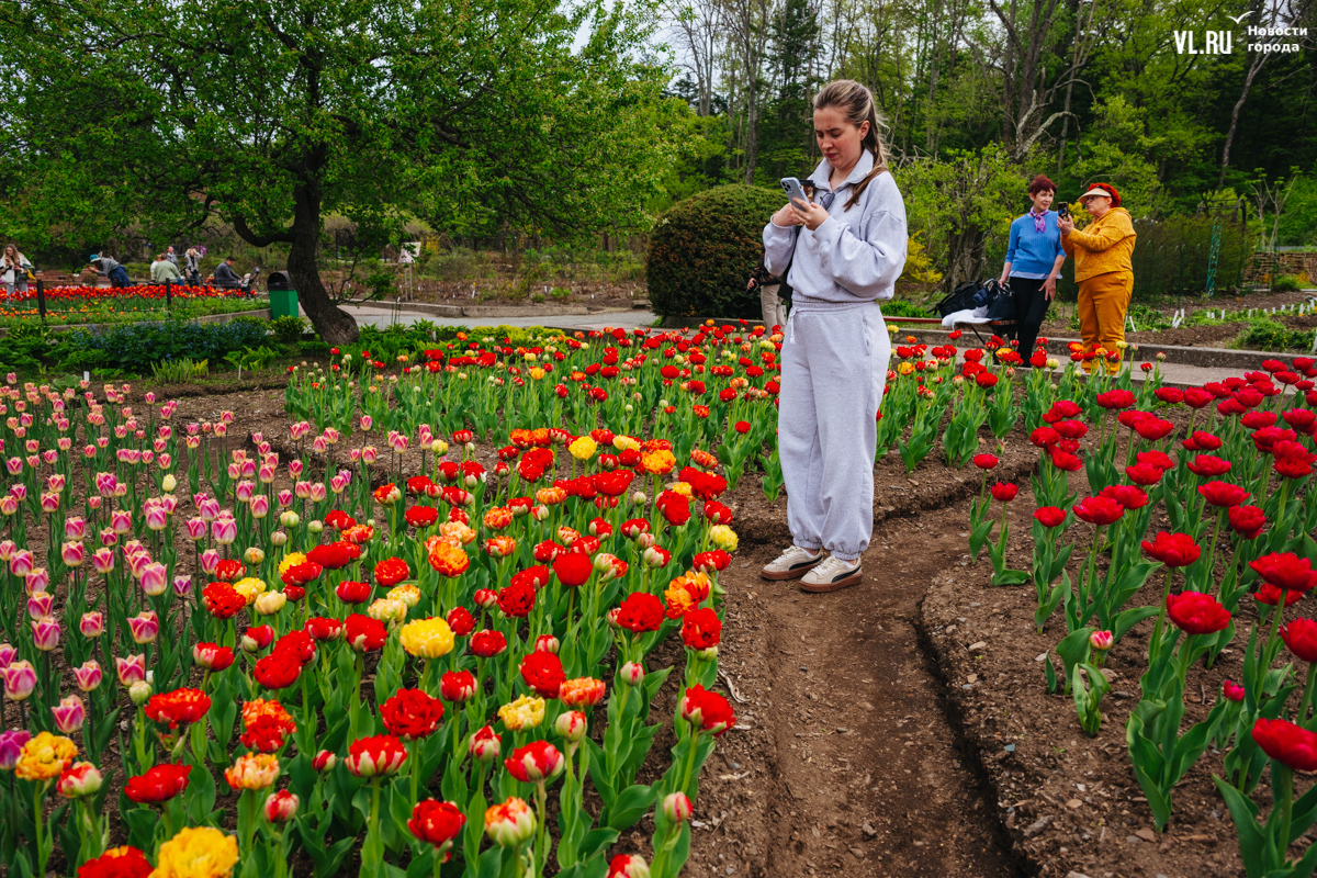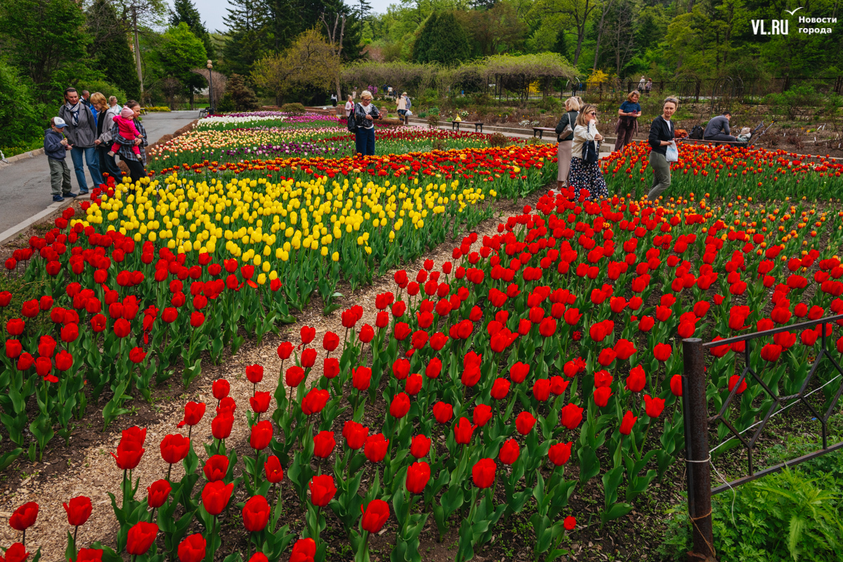 Массовое майское цветение в Ботаническом саду-институте ДВО РАН во Владивостоке превращает открытые экспозиции в яркое природное чудо, когда сотни растений одновременно раскрывают свои бутоны. Пёстрые головы тюльпанов всевозможных расцветок и нежные светлые лепестки вишни сахалинской, магнолий и яблонь подчёркивают нежность только что раскрывшихся молодых листочков.