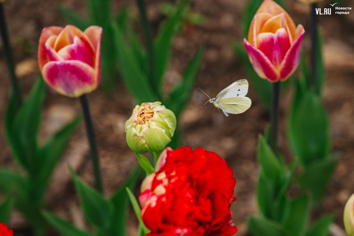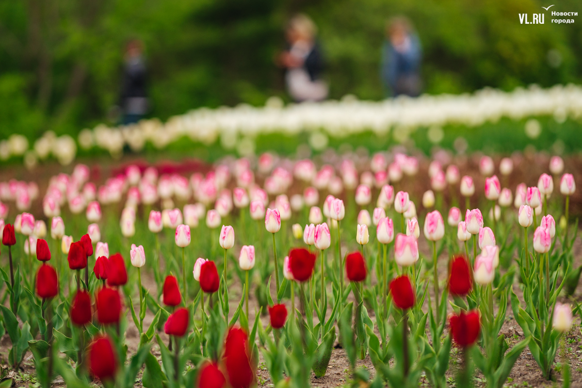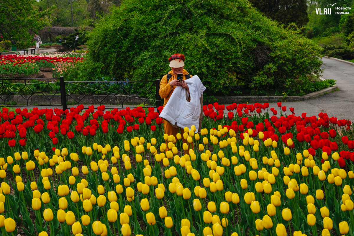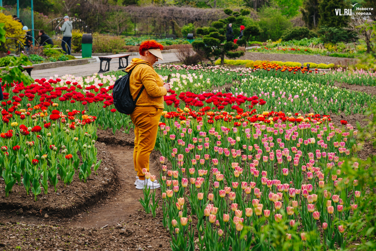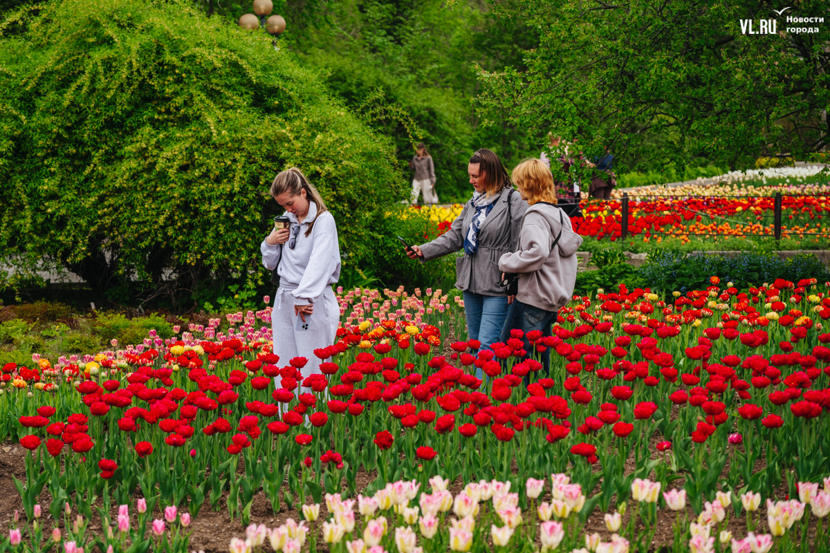 Массовое майское цветение в Ботаническом саду-институте ДВО РАН во Владивостоке превращает открытые экспозиции в яркое природное чудо, когда сотни растений одновременно раскрывают свои бутоны. Пёстрые головы тюльпанов всевозможных расцветок и нежные светлые лепестки вишни сахалинской, магнолий и яблонь подчёркивают нежность только что раскрывшихся молодых листочков.