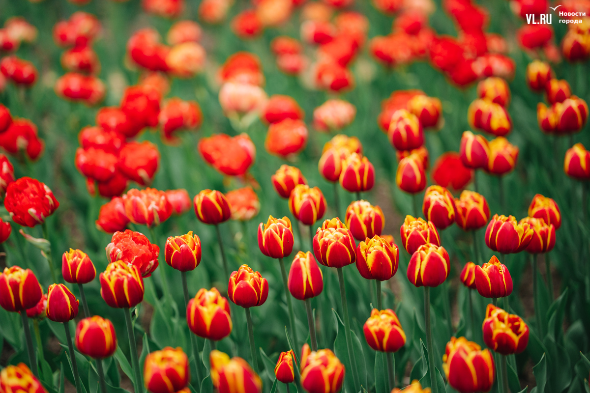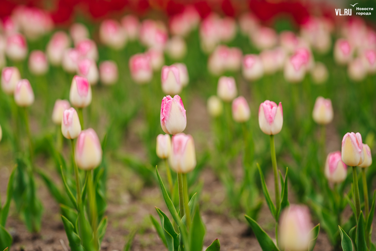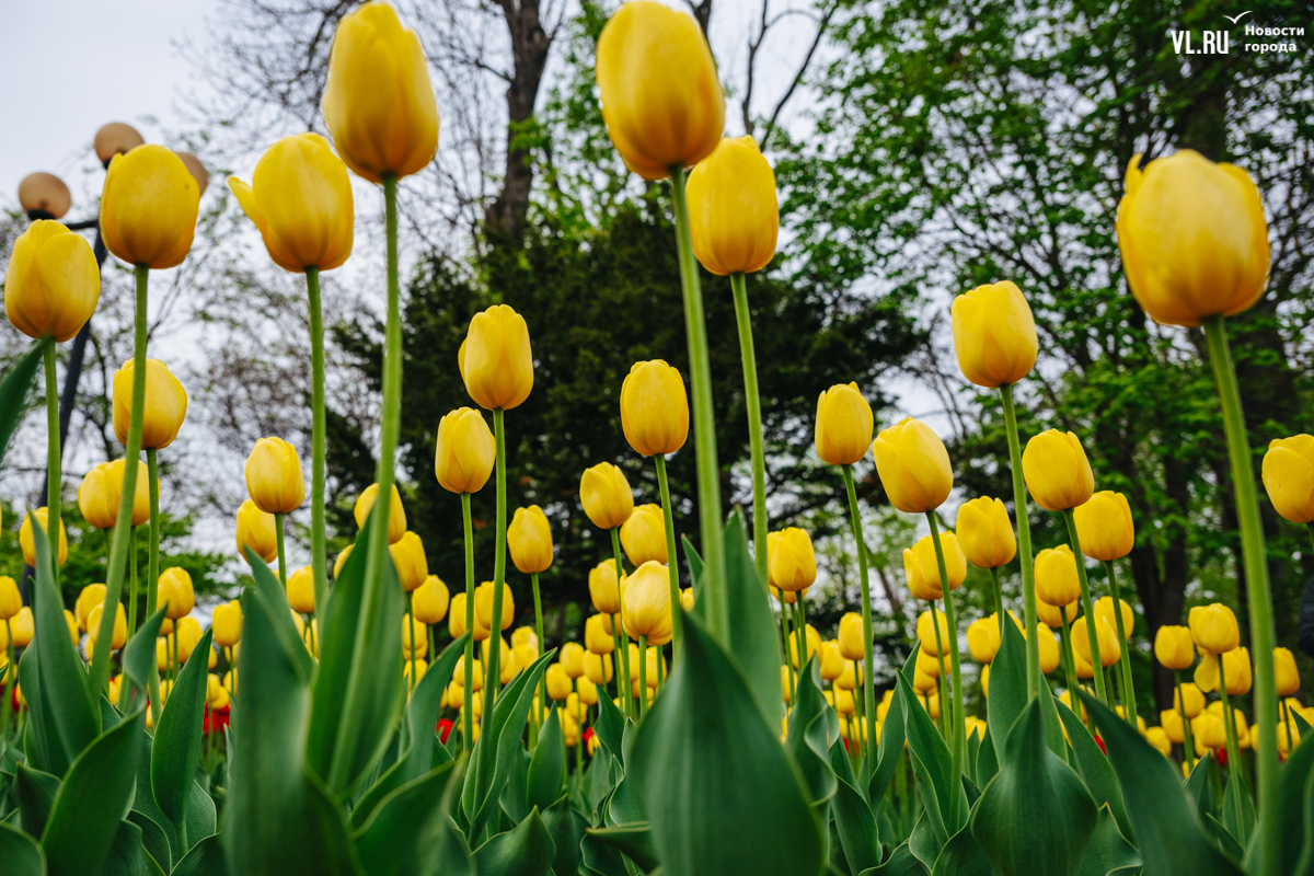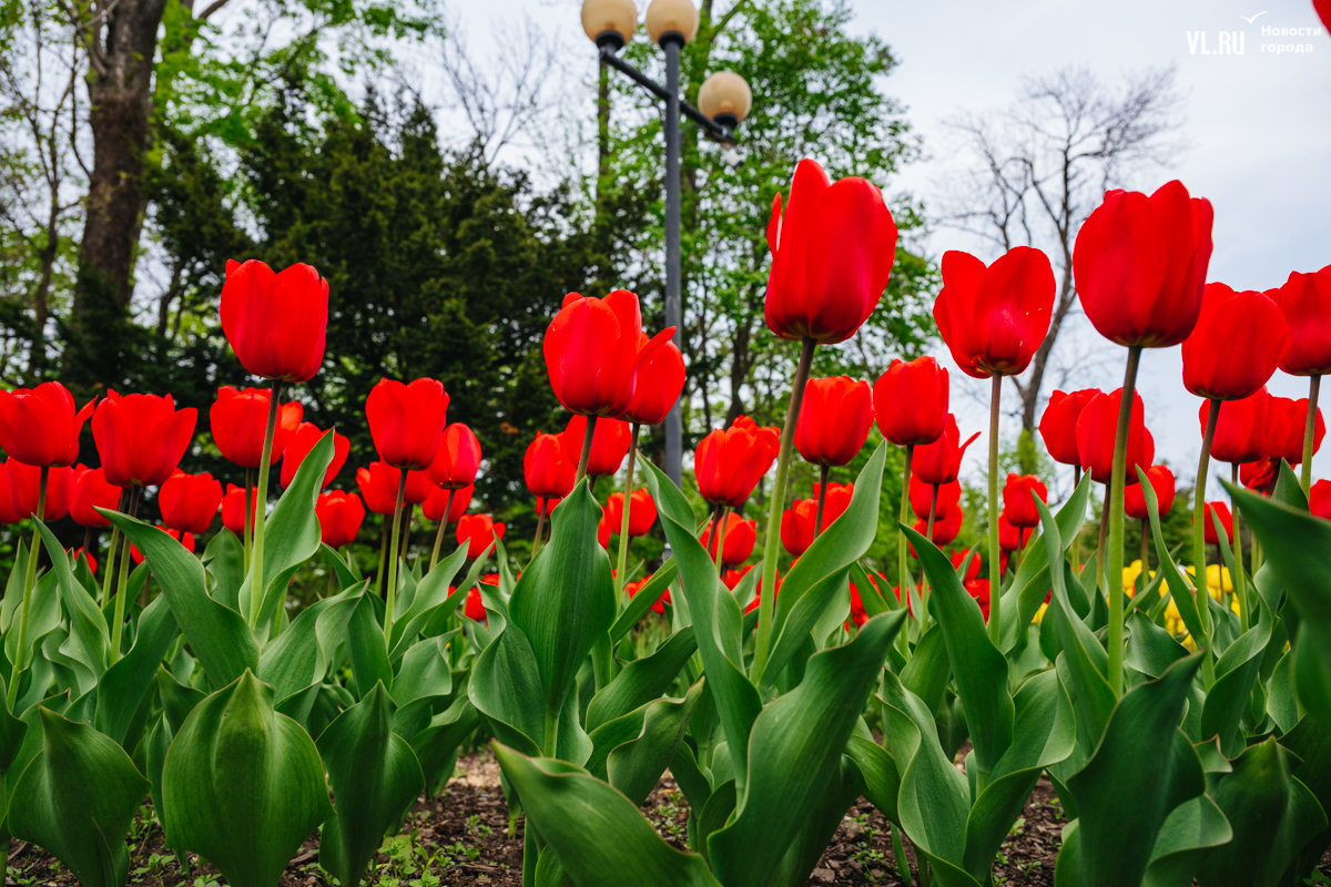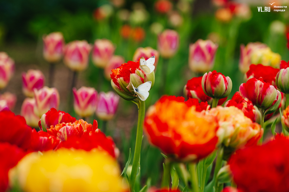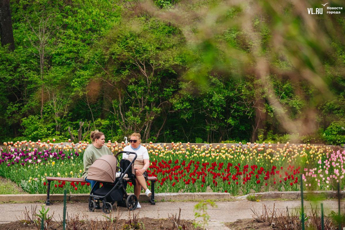 Массовое майское цветение в Ботаническом саду-институте ДВО РАН во Владивостоке превращает открытые экспозиции в яркое природное чудо, когда сотни растений одновременно раскрывают свои бутоны. Пёстрые головы тюльпанов всевозможных расцветок и нежные светлые лепестки вишни сахалинской, магнолий и яблонь подчёркивают нежность только что раскрывшихся молодых листочков.