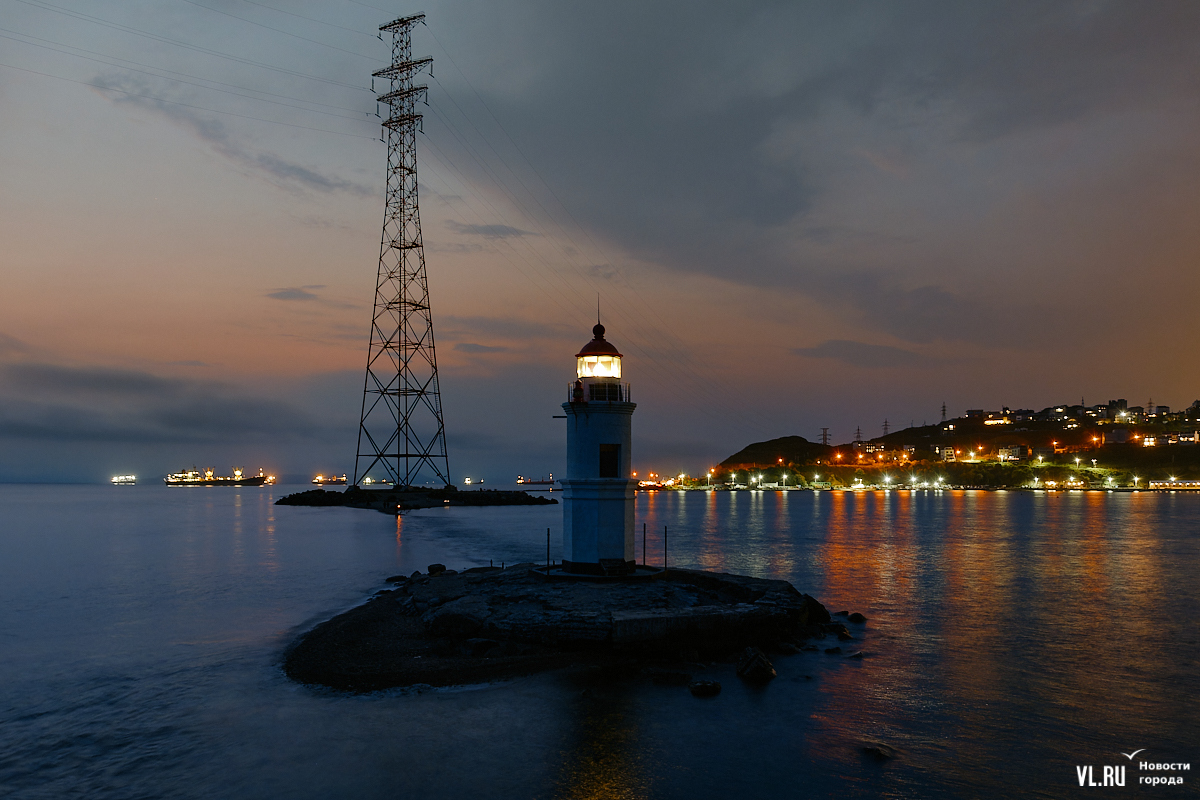 Не менее роскошно выглядит его «собрат» – Русский мост. В ночном освещении создаётся впечатляющий силуэт на фоне чернеющего неба с подсвеченным триколором вант. Его конструкция, отражающаяся в тёмных водах пролива Босфор Восточный, выглядит как сооружение из научно-фантастического фильма. А Токаревский маяк на Эгершельде сияет мощным огнём проходящим мимо судам.