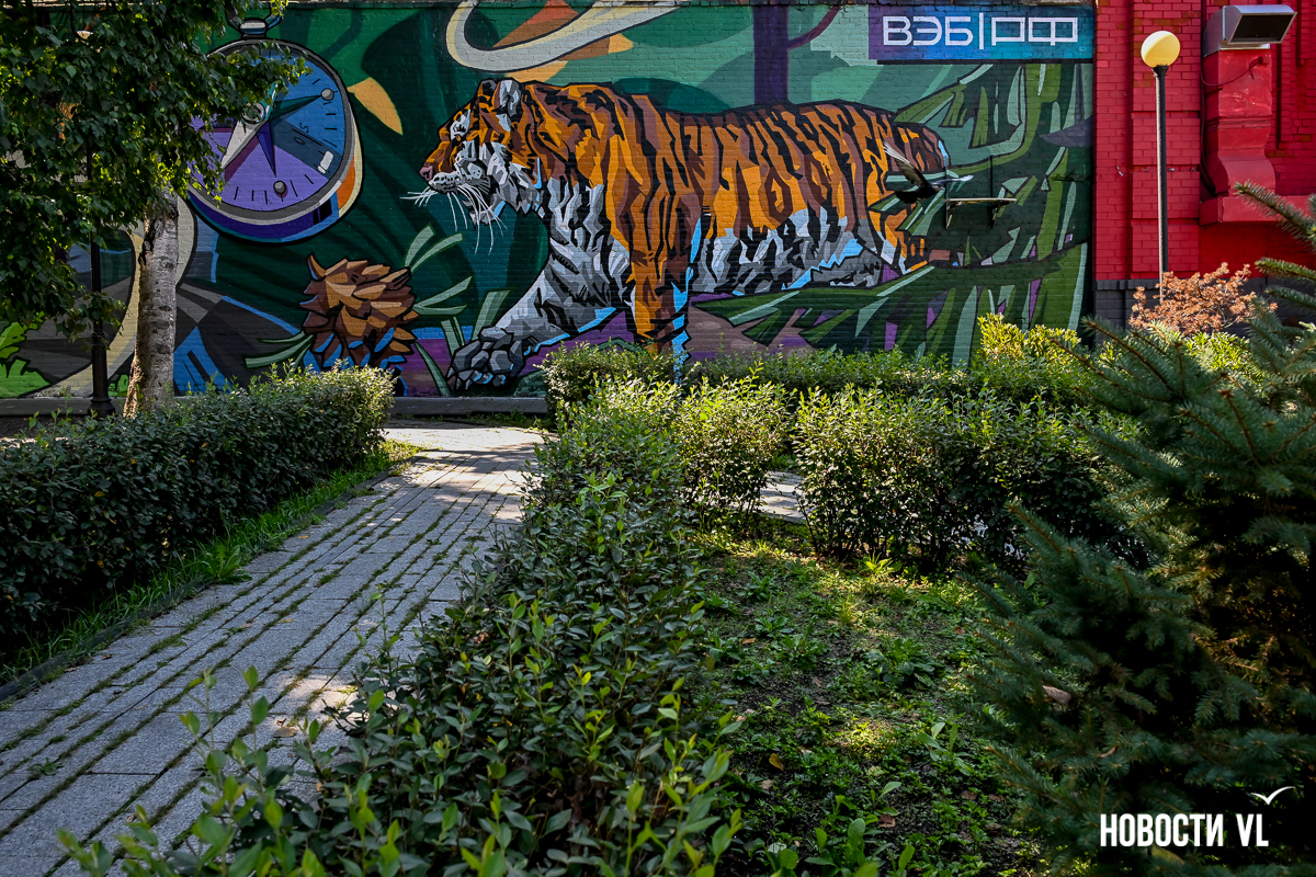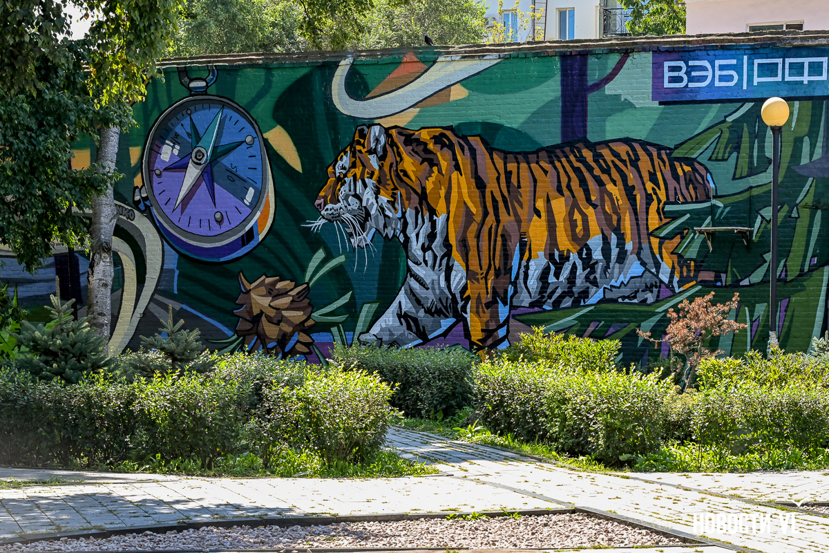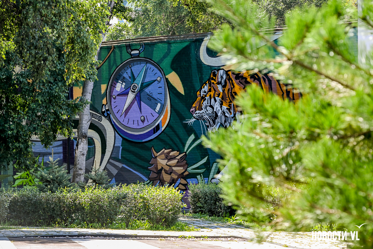 Напомним, что этим летом во Владивостоке прибавилось сразу несколько граффити с похожими сюжетами. Одних только амурских тигров мы насчитали шесть, плюс два леопарда, два дракона, два Арсеньева (второй – на Аксаковской), зато впервые появилась утка-мандаринка.