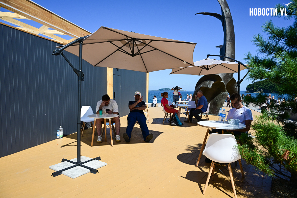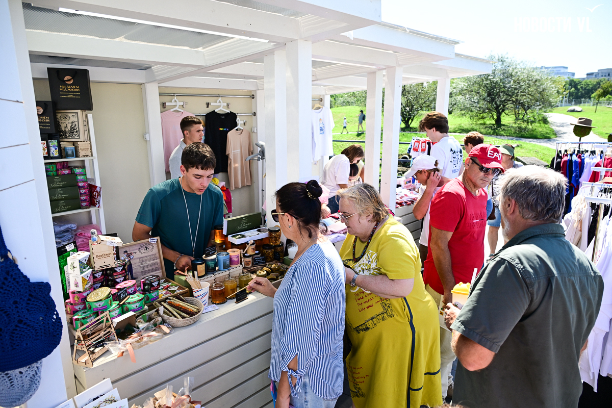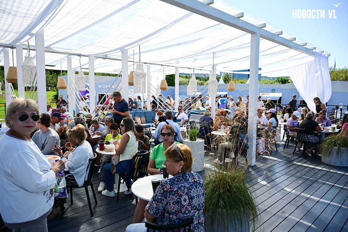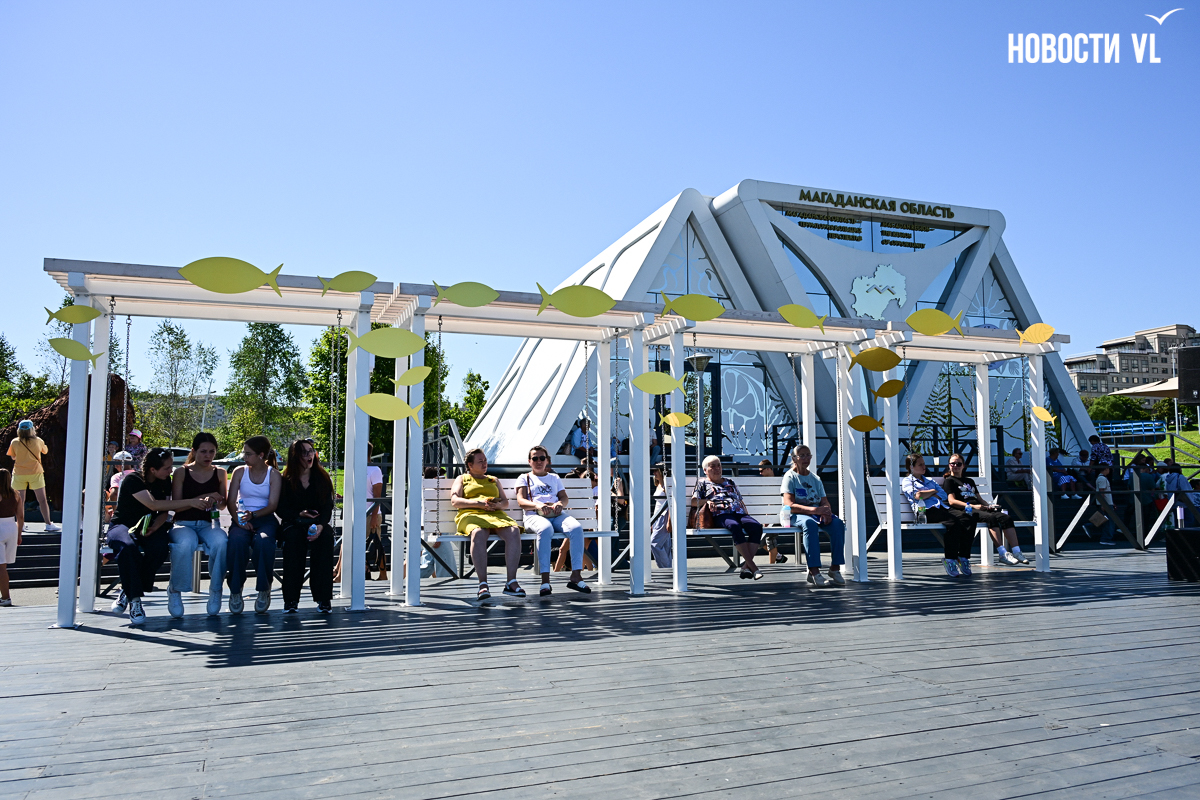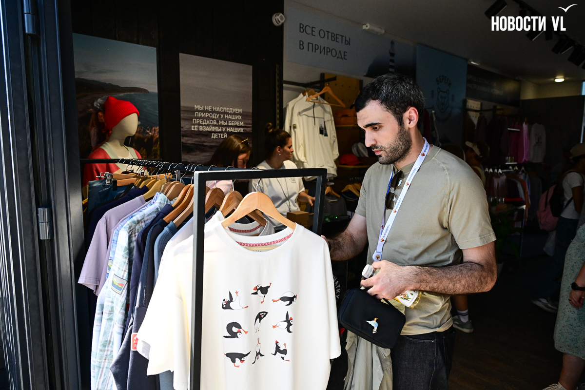 Очереди в павильоны с товарами местных производителей, одеждой с Камчатки и золотом из Якутии гигантские. Причём пиво, например, уже разобрали, а одежда и сувениры остались лишь нескольких размеров и цветов. То же самое касается рыбного рынка. Самая длинная очередь выстроилась за мороженым, но и у обычных заведений, продающих блины и плов, людей хватает, хотя многих позиций нет в меню.