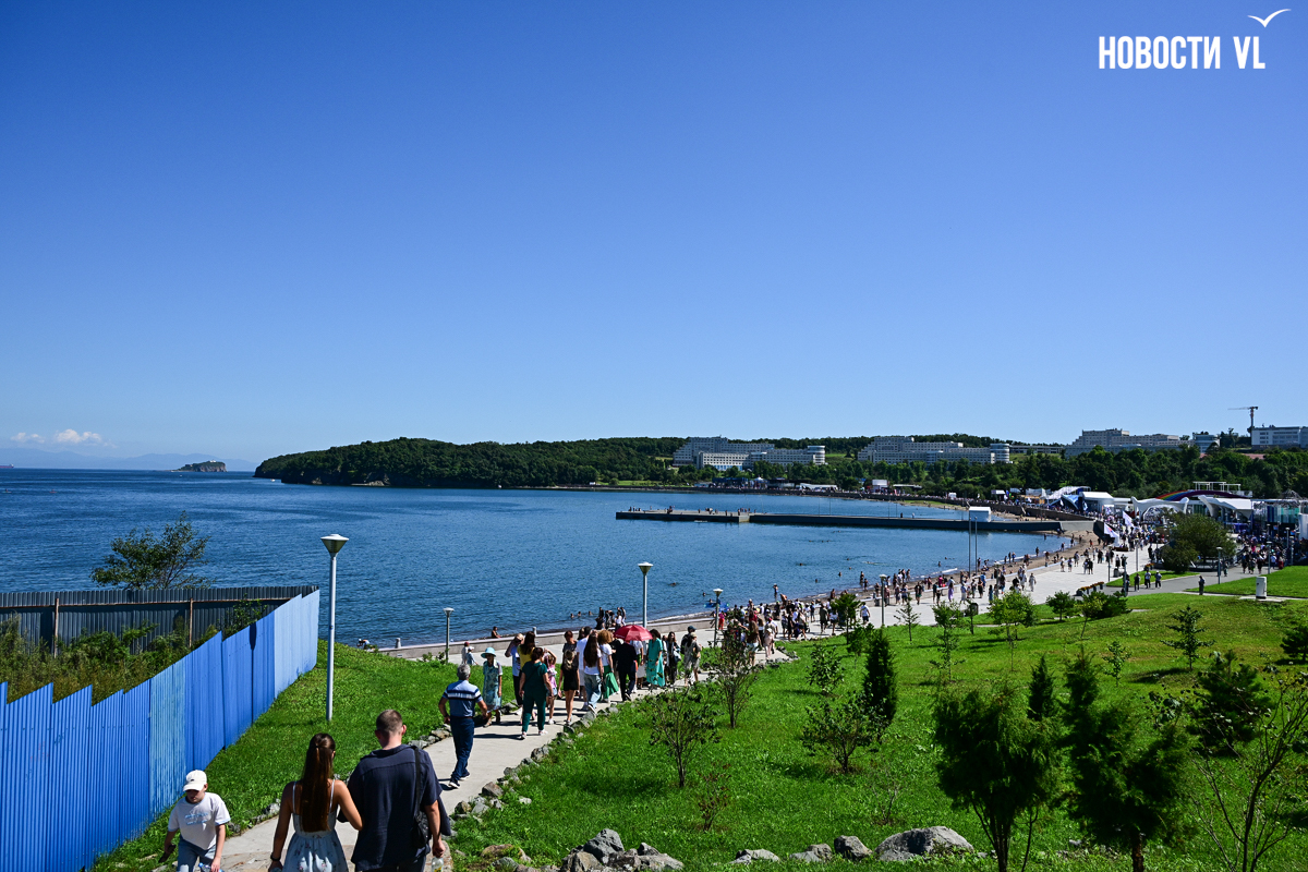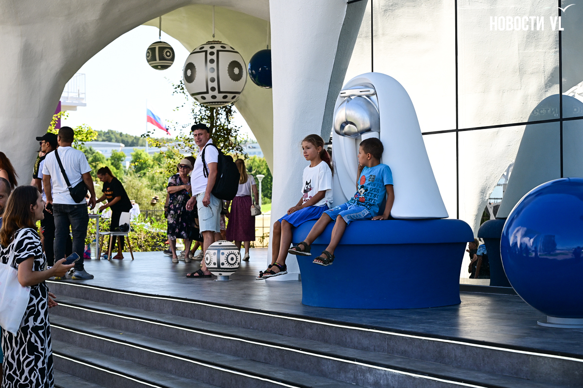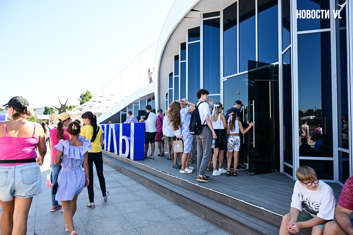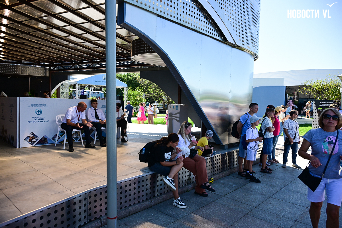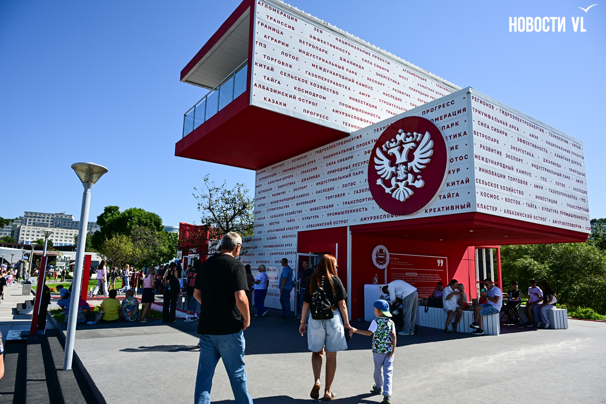 В воскресенье, 7 сентября, «Улица Дальнего Востока» открылась для всех, кто смог сюда попасть. Русский мост на картах в обед уже окрасился красным, обочины заняты машинами ещё до «Мини-ТЭЦ Центральная», автобусы приезжают и уезжают забитыми. На Университетской набережной жарит солнце, горожане спасаются под козырьками или под кондиционерами в павильонах. Многие гости-экспонаты вроде соколов и Кибер-Гоши уже покинули Владивосток, остаётся глядеть на интерактивные экраны и толпиться в очереди за мёдом, футболками и мороженым.