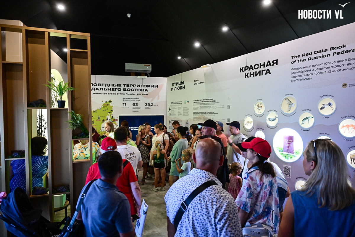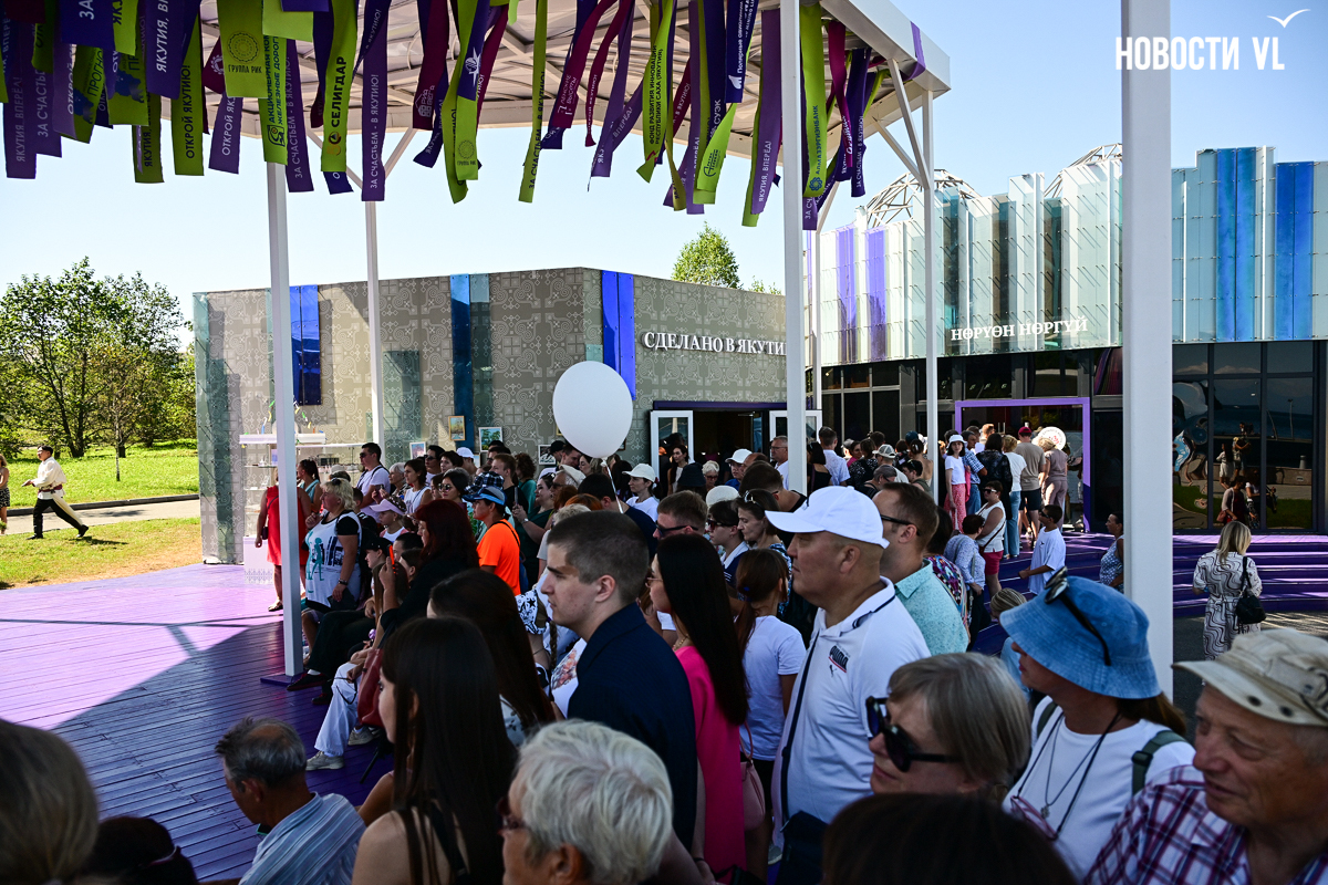 Очереди собираются и ко всем павильонам. Во-первых, там прохладно из-за кондиционеров, во-вторых, горожане надеются увидеть «звёзд» выставки – якутского мамонтёнка Яну, Кибер-Гошу и соколов. Попасть в павильон Якутии у корреспондентов Новостей VL.ru не получилось, как и многим, кто отчаялся стоять в очереди. А вот Гошу и соколов уже увезли. Первый уже летит в Москву, а вторых спрятали, чтобы не нервничали. Чайный дом с бесплатными угощениями тоже закрыт.