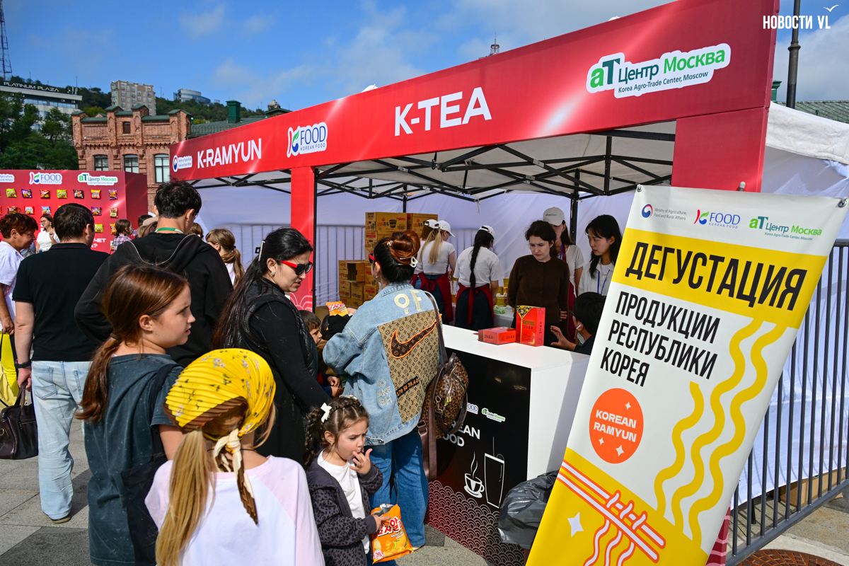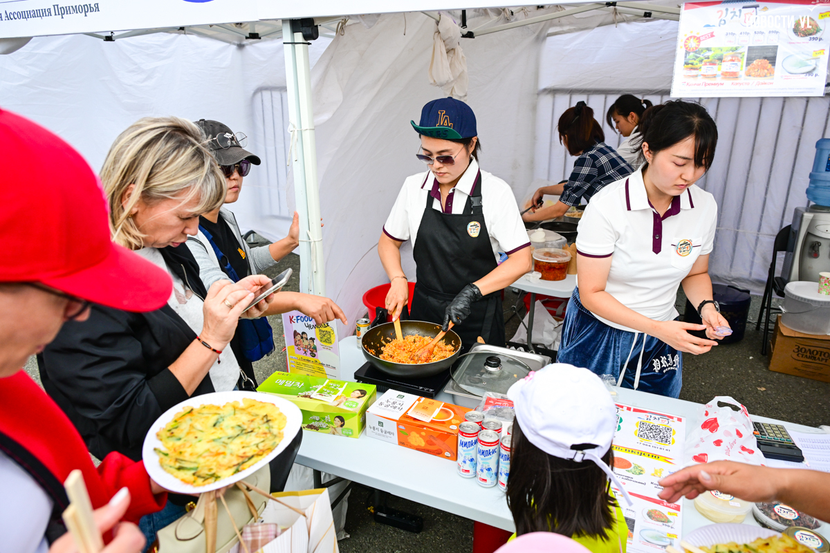Возле старейшего корпуса Дальзавода (Светланская, 72, лит. 22) поставили около 20 палаток с корейской едой. В ассортименте – чокопай, корн-доги, жареный рис и блинчики с кимчи, кимпаб, пибимпап. Есть здесь также различные приправы и корейская косметика.