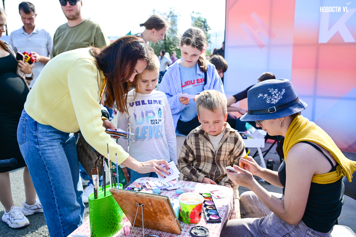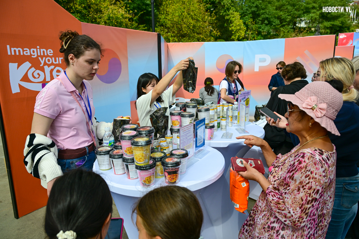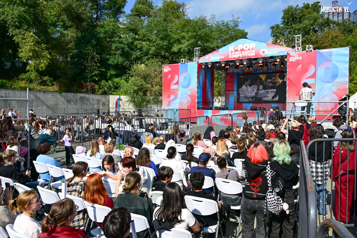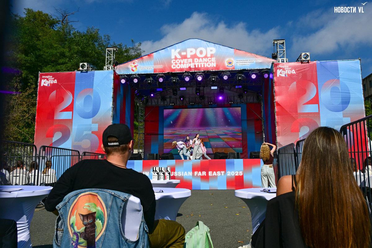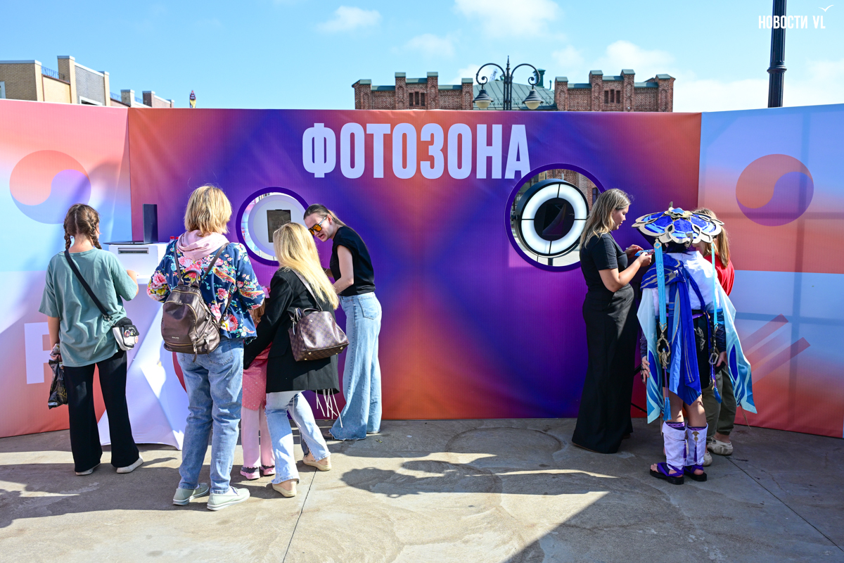Для фестиваля организаторы – консульство Республики Корея и Владивостокское представительство национальной организации туризма этой страны – выстроили несколько площадок. Самая большая – сцена и небольшой зрительный зал из стульев, их разместили на внутренней парковке за Матросским сквером. Рядом обустроили несколько интерактивных зон – мастер-классы по рисованию, танцы (с игровой консолью), на отдельной стойке Центр туризма Кореи раздаёт подарки за подписку в группе во ВКонтакте и прохождение опроса. На фестивале сегодня достаточно людно, но толкучки нет. Гости рассредоточились по всей площадке, а больше всего зрителей собралось около сцены.