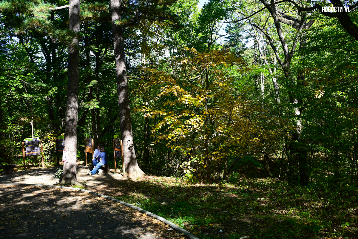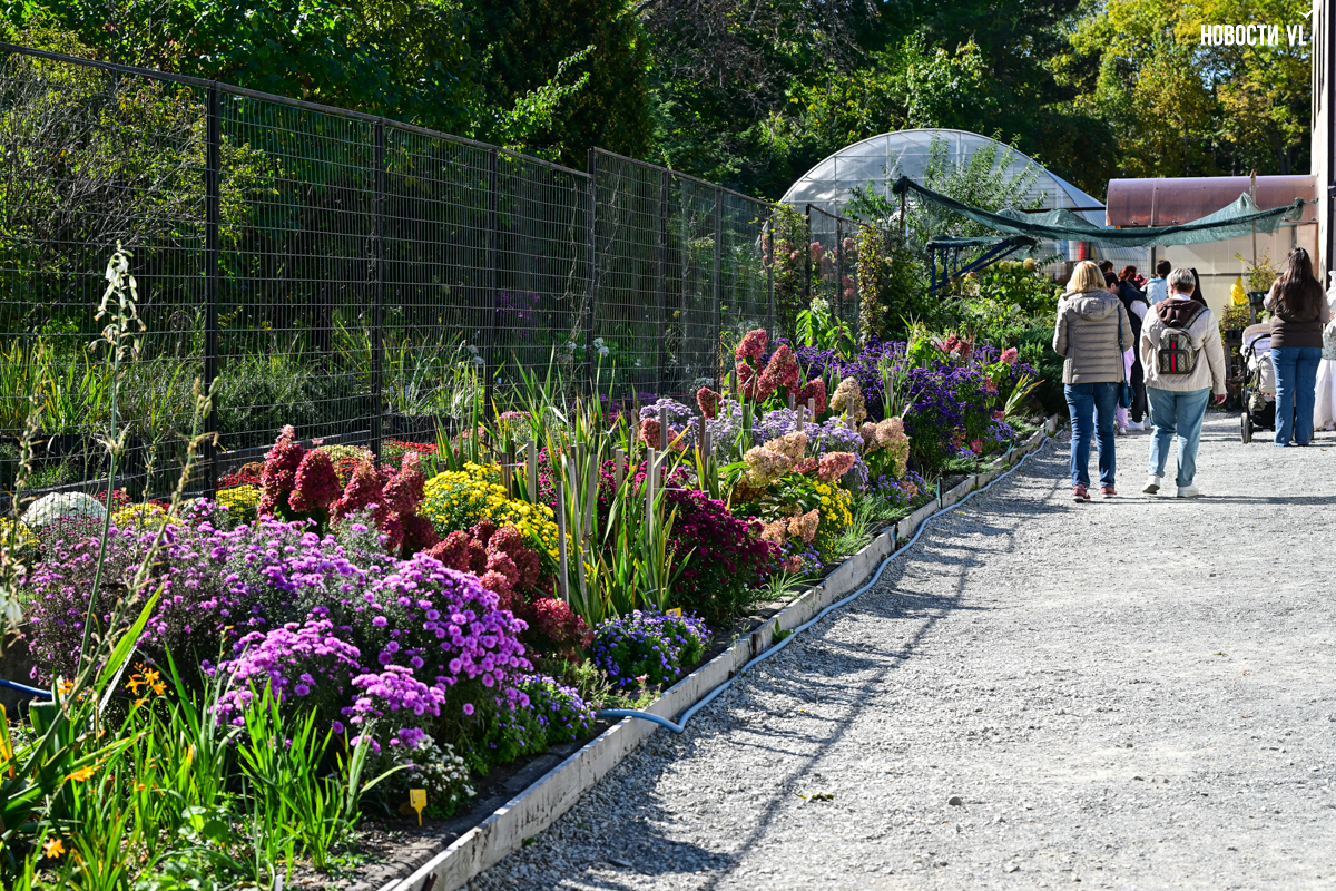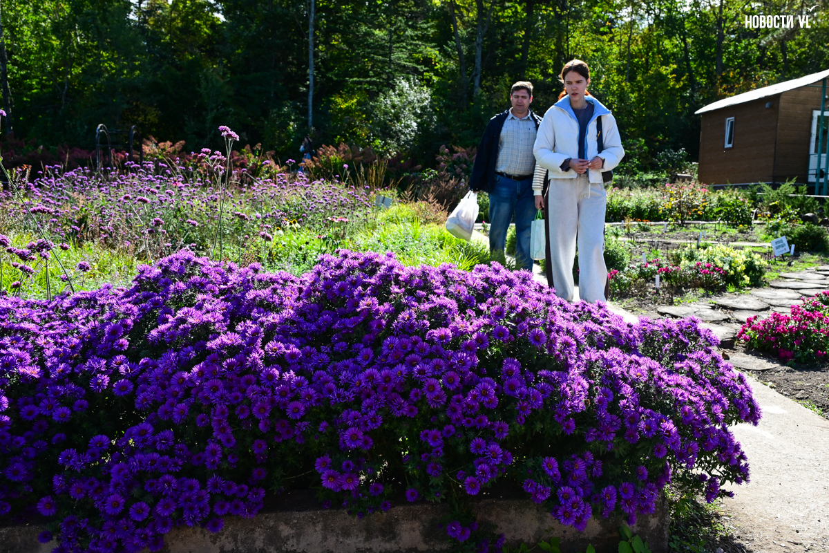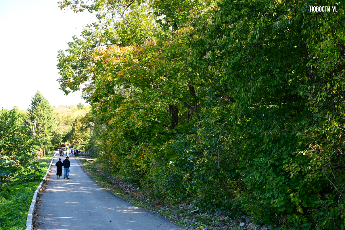 На этой неделе осень сменила жаркую летнюю погоду, а воздух во Владивостоке стал прохладным и прозрачным. И сразу многие горожане устремились в Ботанический сад ДВО РАН, чтобы насладиться одновременным увяданием и расцветом природы. На входе – очереди, по тропинкам открытой экспозиции даже в будний день гуляют десятки людей. На солнце ещё горят георгины, цветут облака хризантем. Деревья осень пока едва тронула, алые клёны приходится выискивать, полностью окраситься они должны примерно через неделю, но на экологических тропах уже можно похрустеть опавшей листвой.
