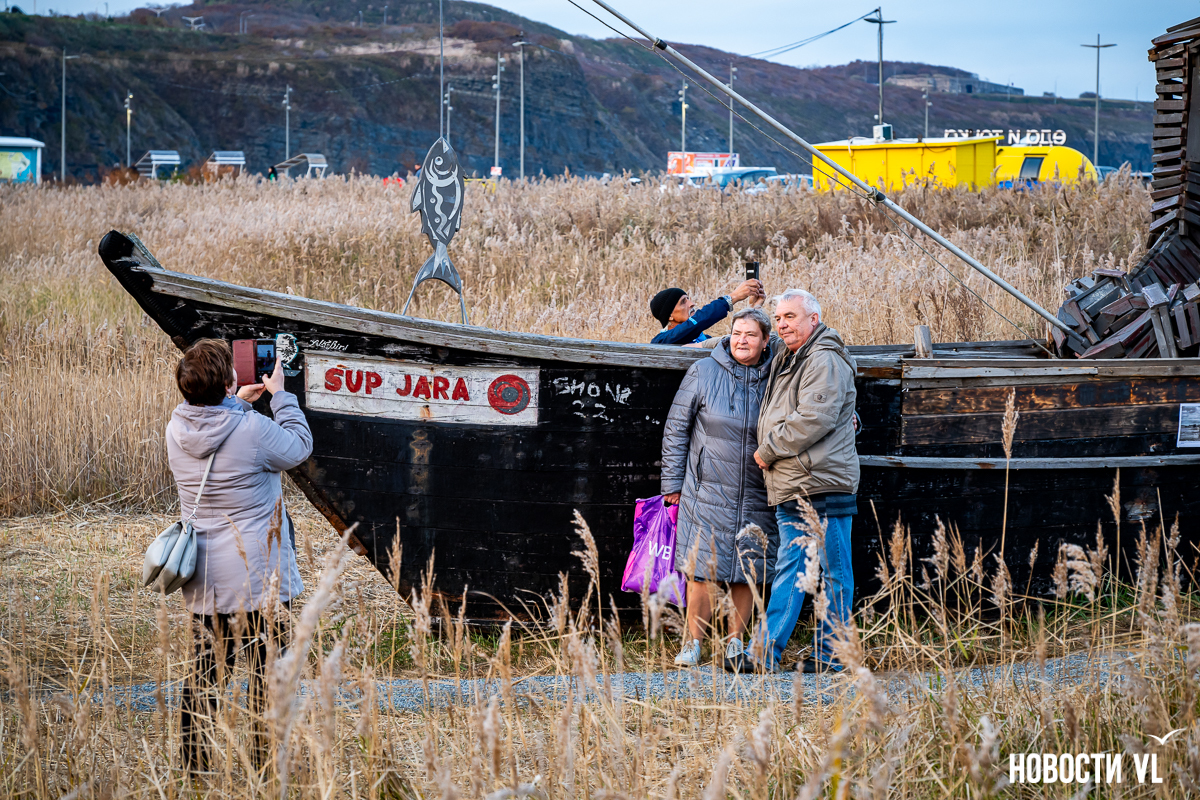 Выброшенная ещё в 2018 году на берег Русского острова корейская шхуна обрела вторую жизнь, превратившись в арт-объект «Рыбак в лодке». Торжественное открытие инсталляции, вдохновившее горожан на запуск бумажных корабликов и размышления о вечном, прошло в воскресенье вечером на набережной Ахлёстышева.