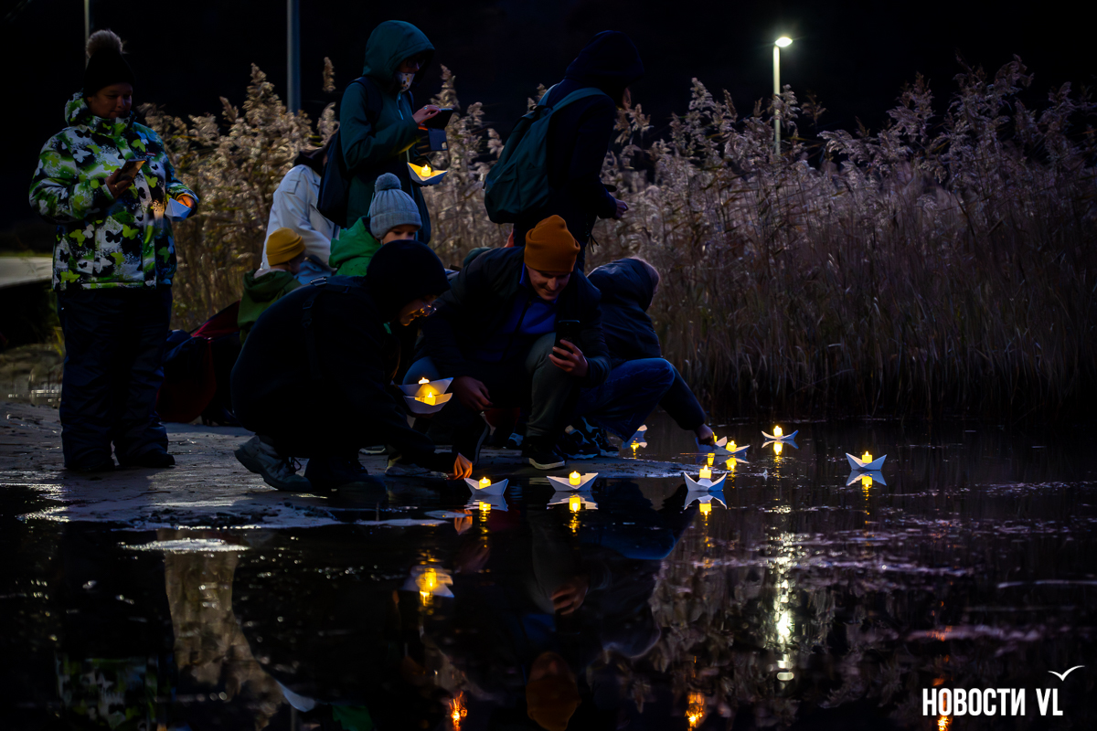 Открытие прошло в неформальной обстановке. Под красивый закат гости мероприятия запустили в воду светящиеся бумажные кораблики – как дань уважения всем, чья жизнь связана с морем. В завершение акции кораблики были аккуратно выловлены из воды, чтобы сохранить экологию залива.