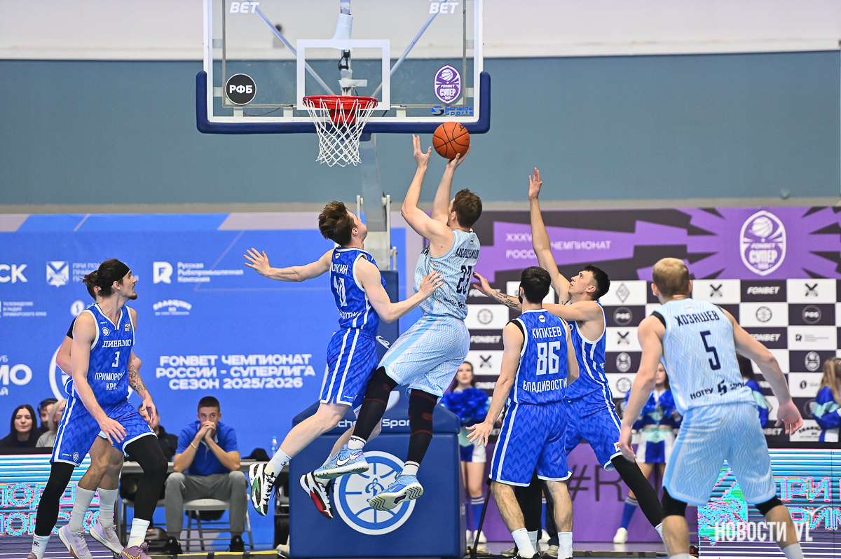 В среду, 5 ноября, приморский баскетбольный клуб «Динамо» в завершении домашней серии регулярного чемпионата Суперлиги с разницей в 30 очков победил ижевский «Купол-Родники». На паркете СК «Олимпиец» во Владивостоке команда оформила первую «сотню» в сезоне, при этом отличились все двенадцать игроков, попавшие в заявку на матч, – 101:71 (30:15, 27:20, 21:24, 23:12). Самым результативным, как и в предыдущем победном матче с действующим чемпионом, стал американец Дакуан Смит, на счету которого 18 очков.