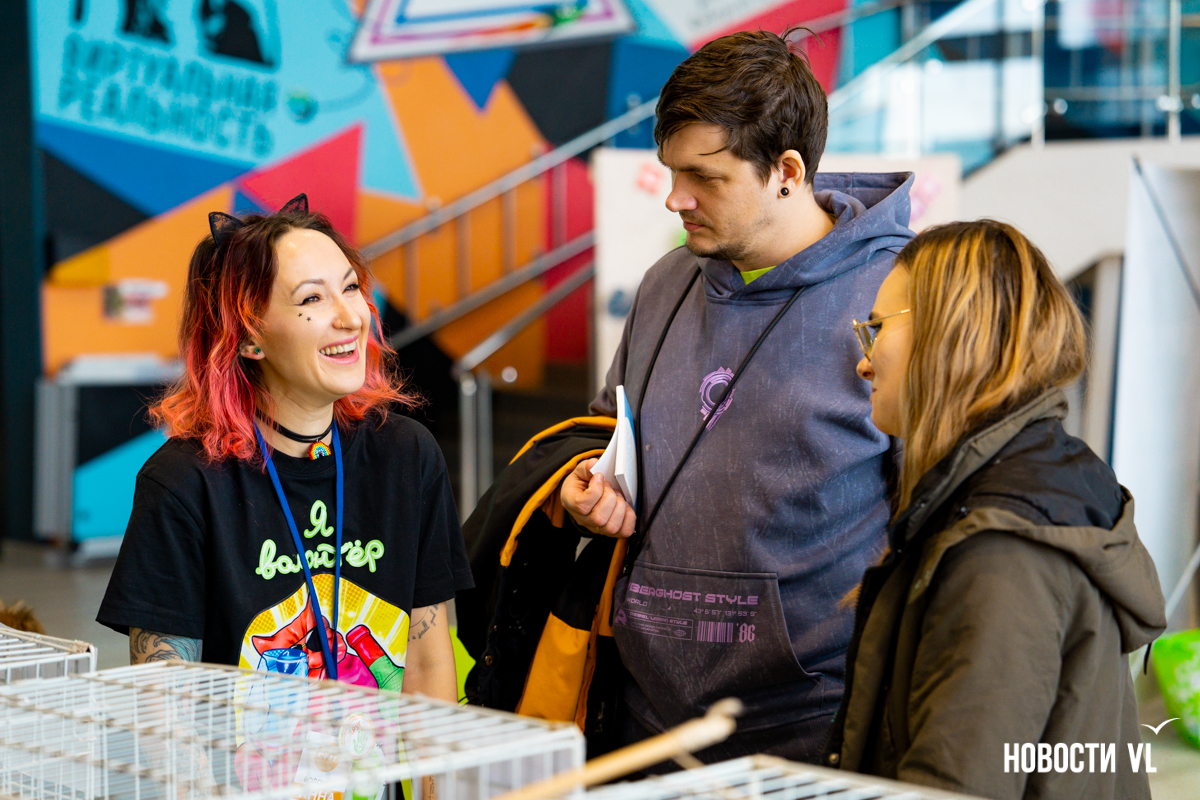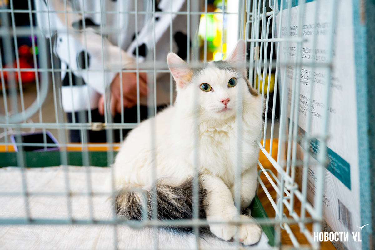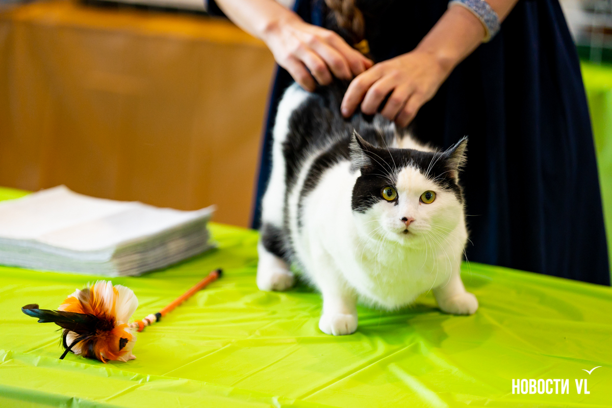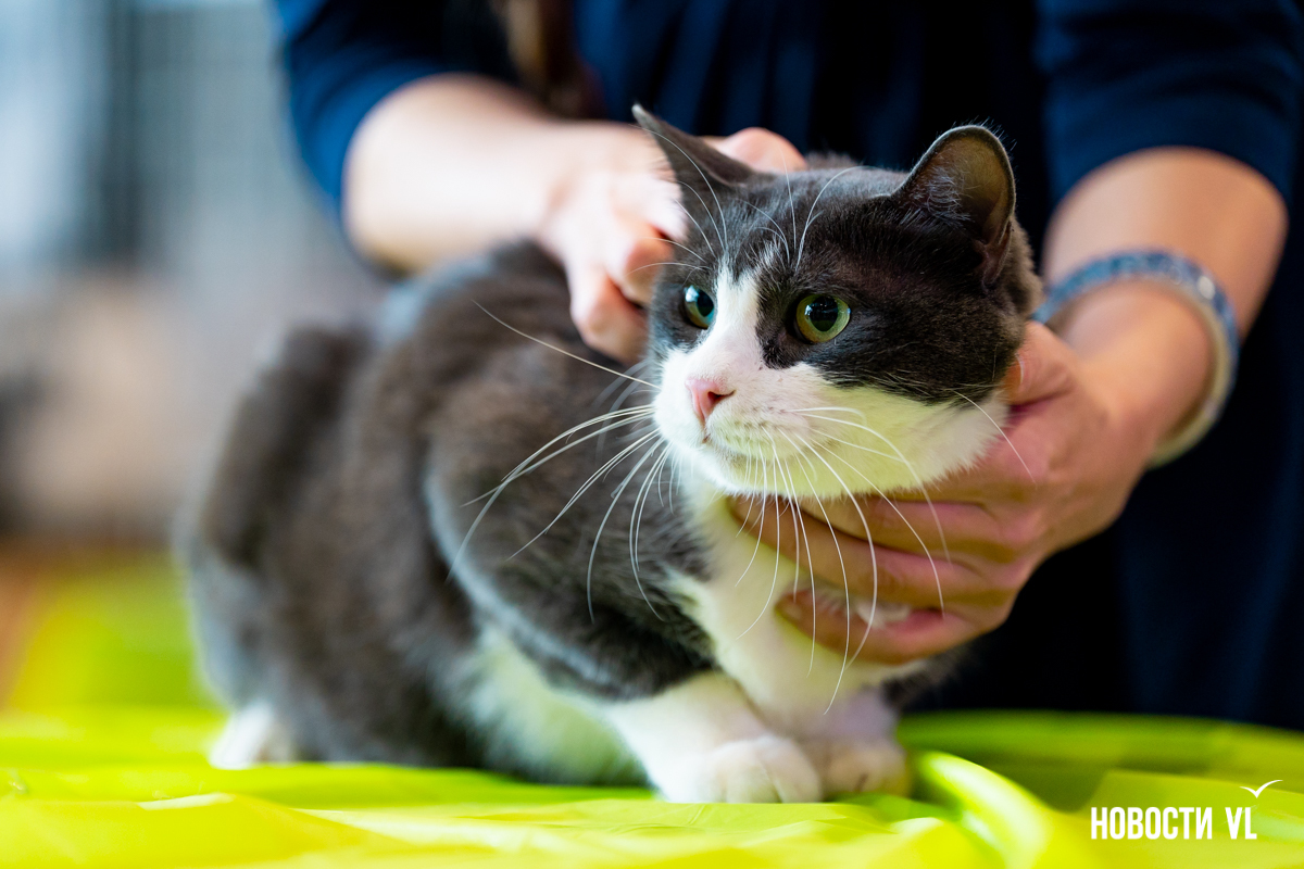 За трёхцветную Лауру отвечает Яна Киселёва – волонтёр центра «Лапочки» ДВФУ. Рассказывает, что Лауру очень долго не могли забрать у её бывшей хозяйки. Женщина жила в хрущёвке с несколькими животными, но в какой-то момент котики начали размножаться, их стало больше сорока. Многие не выживали, но Лауре повезло. Теперь она ищет новый дом.