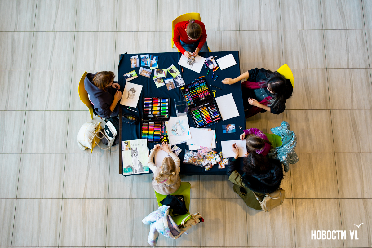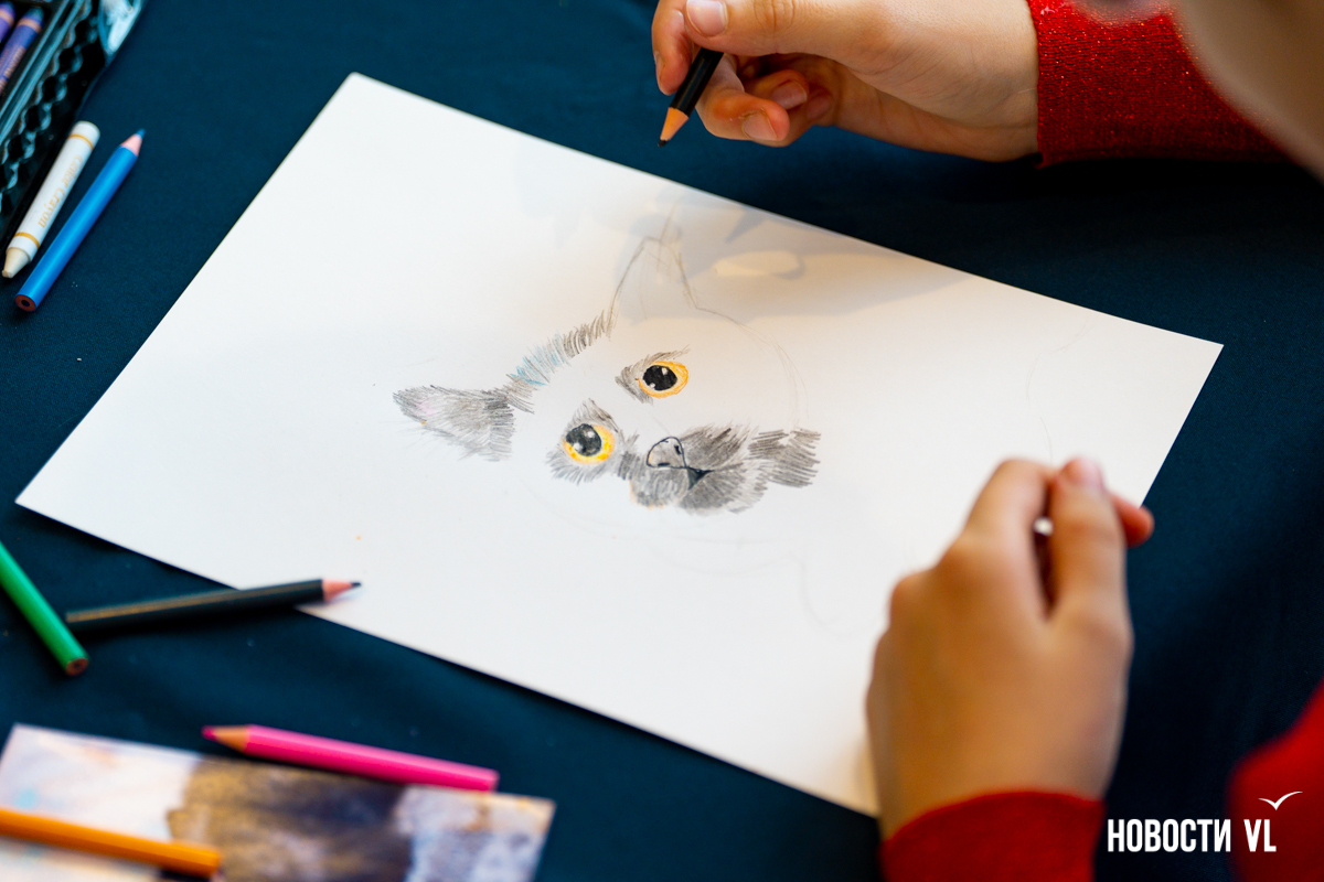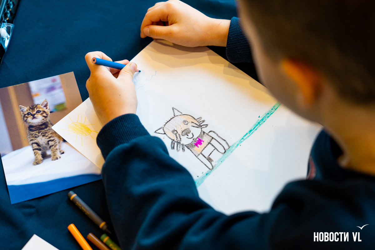 Кто-то выбирал сувенир на память возле прилавка с фирменным мерчем: наклейки, магниты, блокноты, календари с фотографиями воспитанников фонда. Дети поучаствовали в конкурсе рисунков – рисовали прямо здесь, по фотографиям животных из фонда. Победители получили подарки.