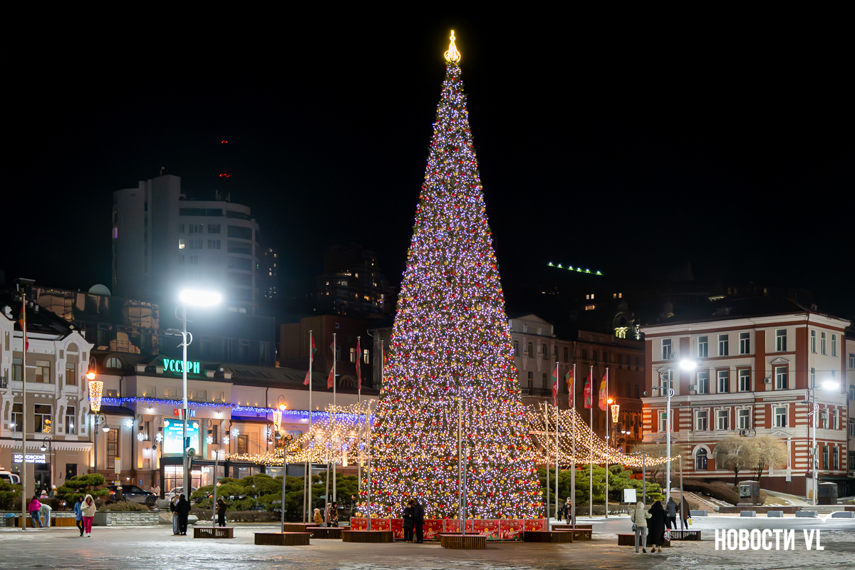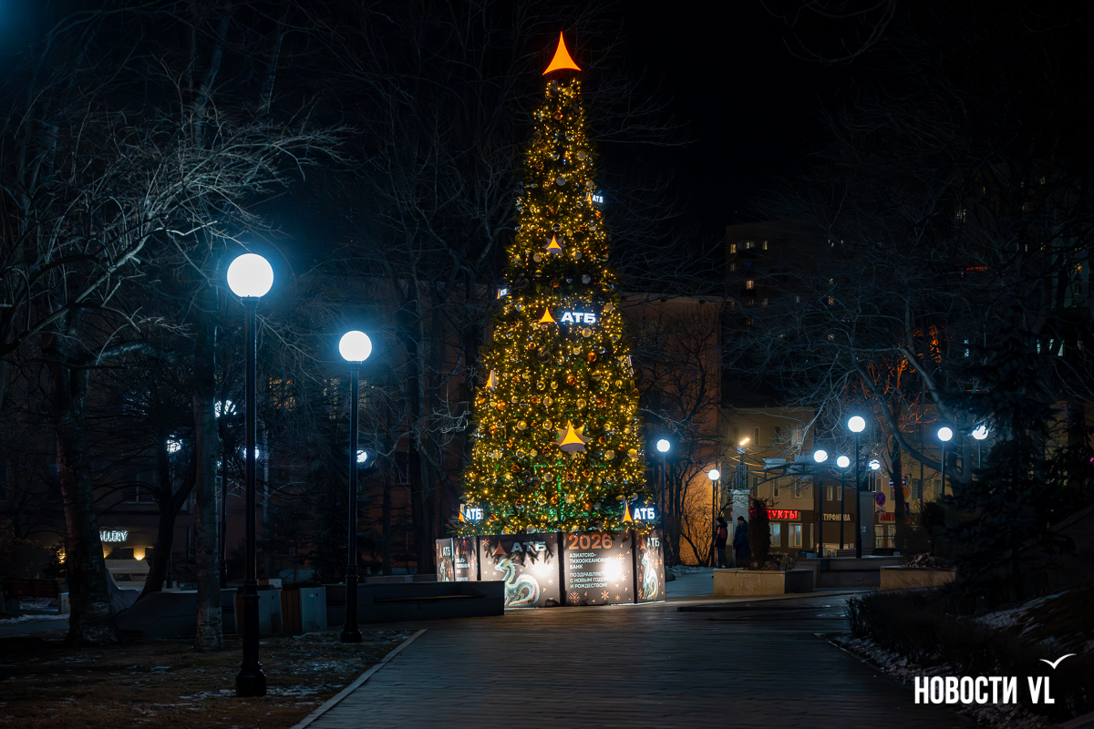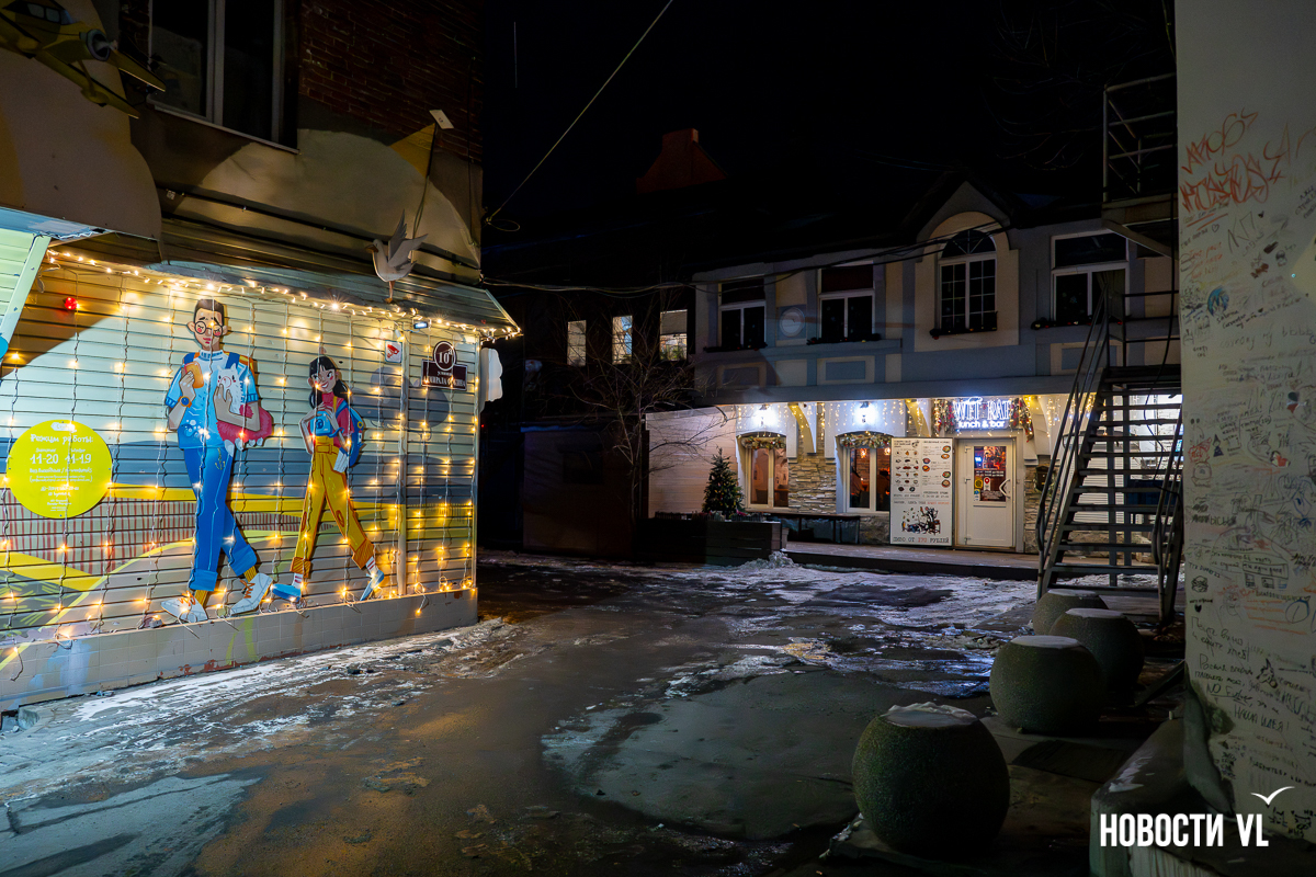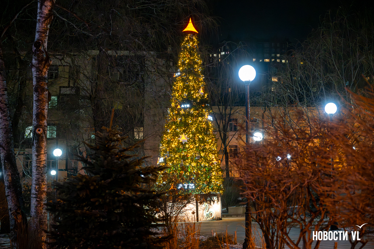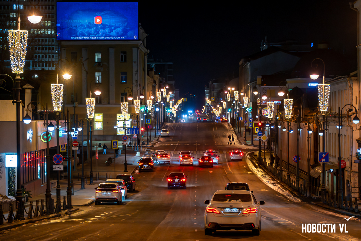 Владивосток во всю готовится к встрече Нового года. До него осталось чуть больше недели, и городские улицы, скверы, дороги и заведения по вечерам сияют праздничными украшениями. Светодиодные фигуры, гирлянды, светящиеся шары и гигантские снежинки с наступлением темноты сверкают, создавая особенное настроение.