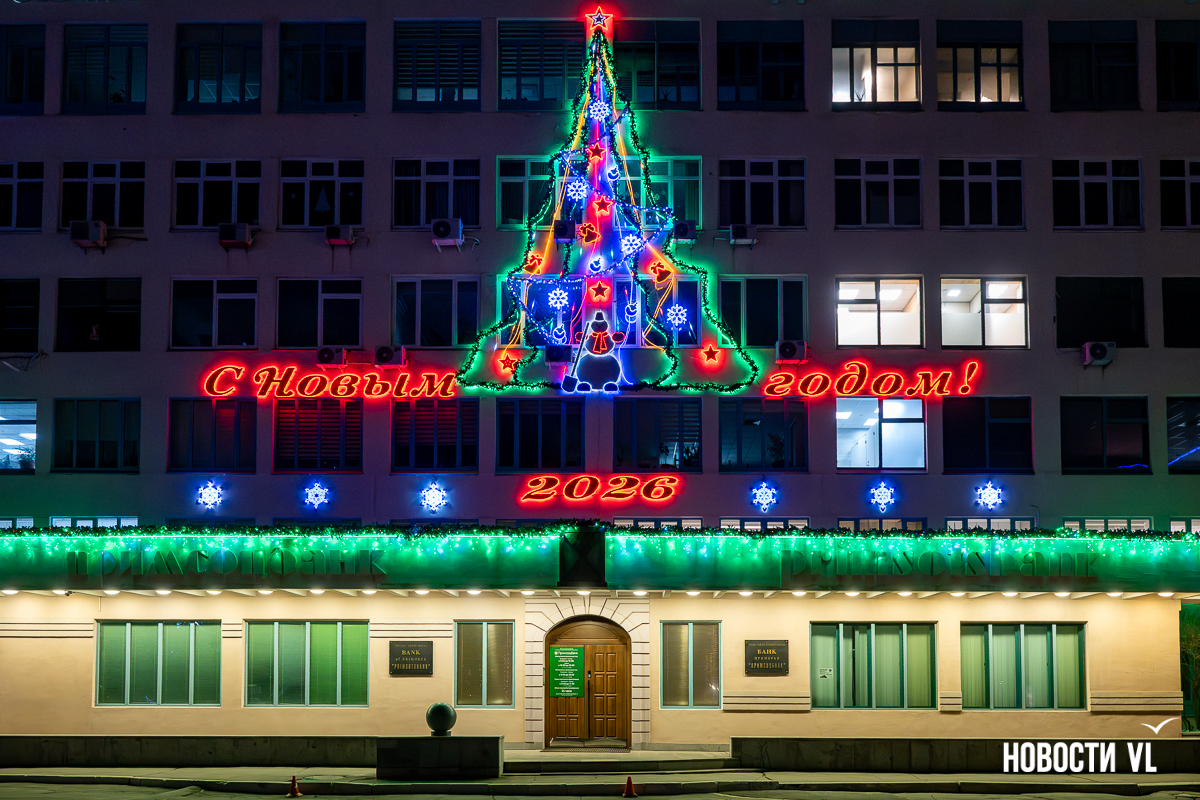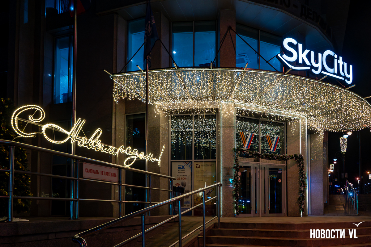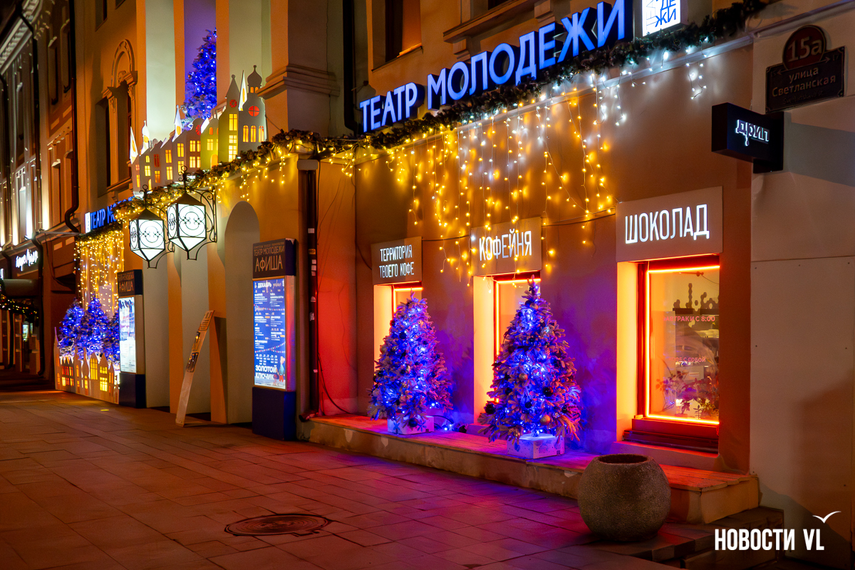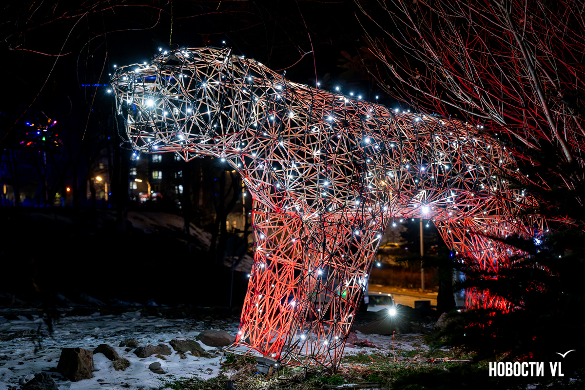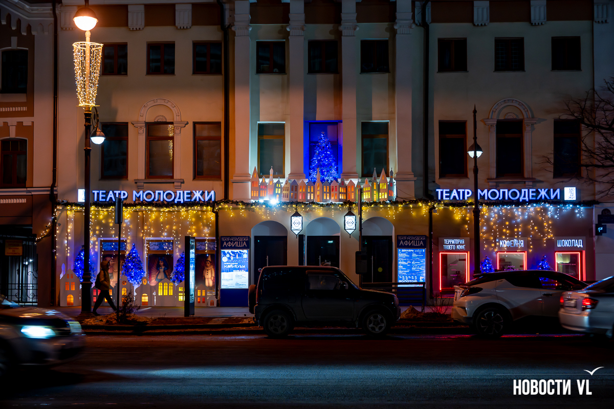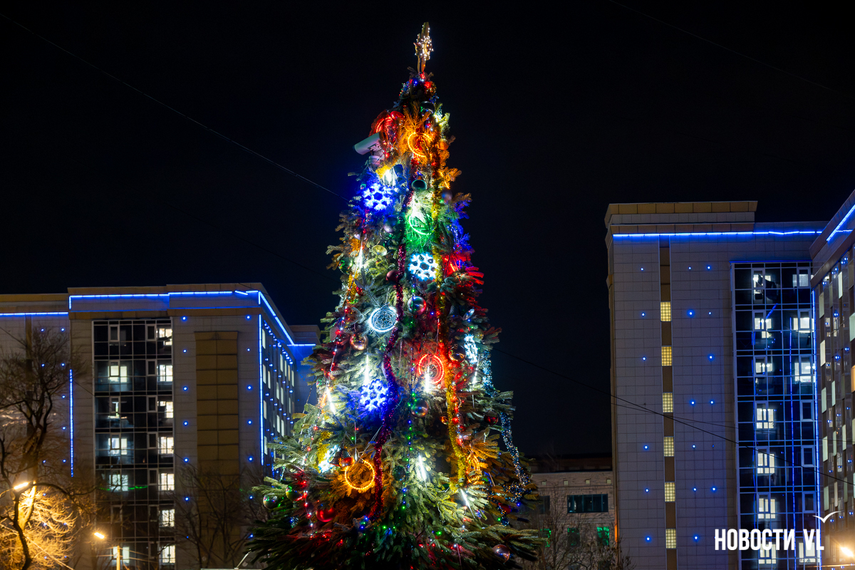 Владивосток во всю готовится к встрече Нового года. До него осталось чуть больше недели, и городские улицы, скверы, дороги и заведения по вечерам сияют праздничными украшениями. Светодиодные фигуры, гирлянды, светящиеся шары и гигантские снежинки с наступлением темноты сверкают, создавая особенное настроение.