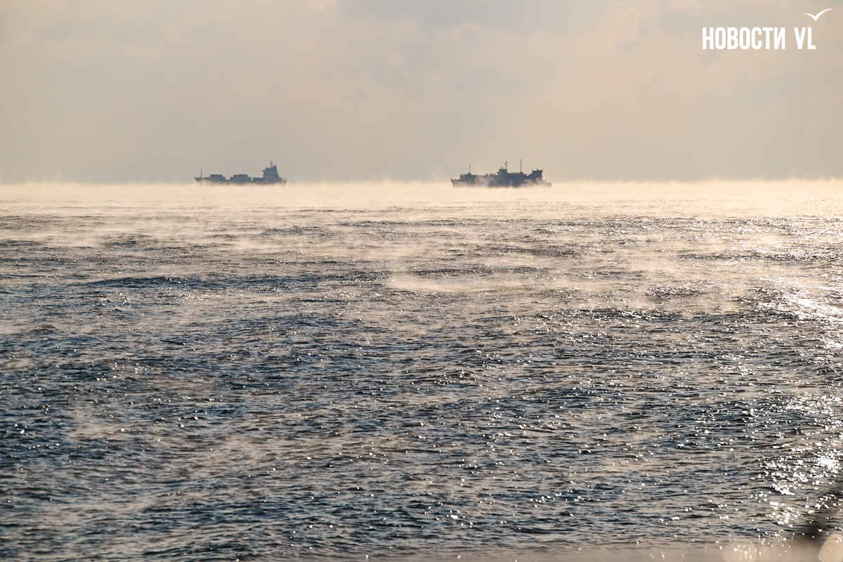 Резкое похолодание более чем на 10 градусов заставило море Владивостока покрыться паром, который клубится в нескольких метрах над водой. Это довольно распространённое явление для этого времени года. Посмотреть на эту красоту можно в бухтах Патрокл и Соболь, а также в кутовой части Золотого Рога.