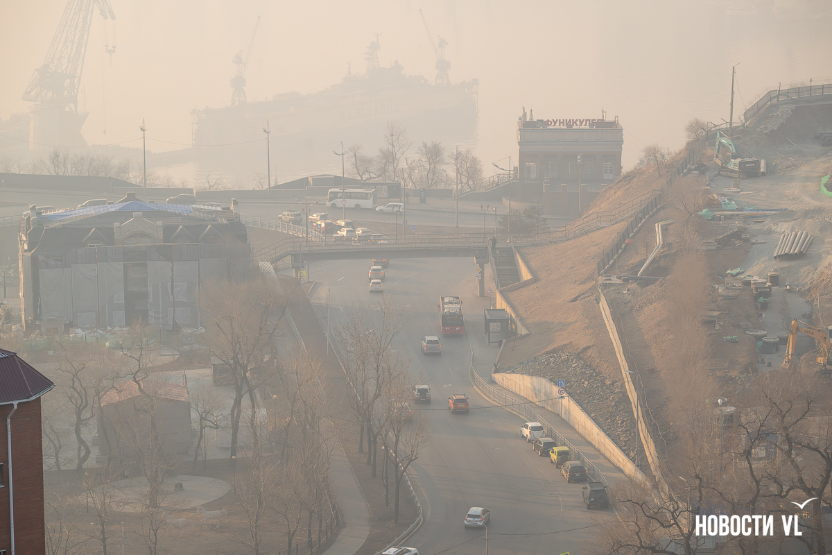 В Примгидромете Новостям VL рассказали, что всему виной природные пожары по ту сторону Амурского залива. Дым от них и принёс смог во Владивосток. Кроме этого, сейчас в городе штиль, и задымлённость может сохраняться минимум до вечера, после придёт южный ветер.