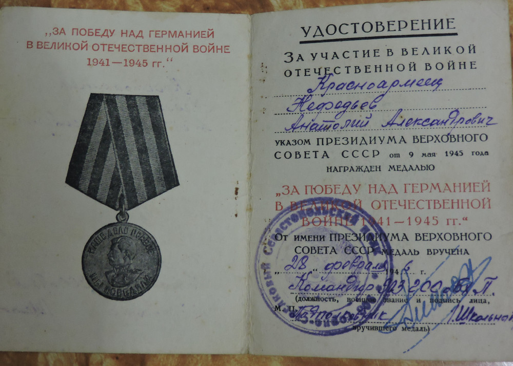 Анатолий Александрович Нефедьев прошел через всю Великую Отечественную войну, участвовал в освобождении Чехословакии и за проявленную отвагу получил награды и благодарственные письма от Иосифа Сталина. О своем деде-фронтовике VL.ru рассказала его внучка - Наталья Червякова.