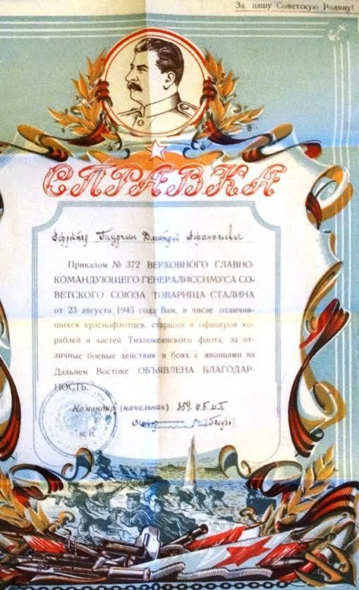 Вспоминает Турчин и о демобилизации, которая пришла только в 1947 году: «Четыре с половиной года моей молодости поглотила война. В аспекте былого не могу не сказать о Владивостоке. Ведь город находился у черты фронта. И вот уже после демобилизации мне многие рассказывали, что однажды у нефтебазы стоял какой-то небольшой корабль. В это время над заливом показался японский смертник. Он направился к кораблю. Но, очевидно, решил поразить более важный объект – нефтебазу - и стал разворачиваться. В этот момент матрос, находившийся на посту на палубе корабля, сразил смертника из пулеметной установки. Самолет упал в залив недалеко от нефтебазы».