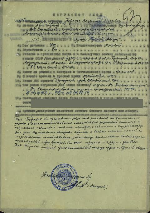 Владимир Андреевич Баранов отправился на фронт в 19 лет и прошел через всю Великую Отечественную войну. Участвовал в боях против фашистов на 1-м и 2-м Украинском, Северном, Карельском и Воронежском фронтах, после воевал против милитаристской Японии на Дальнем Востоке. О своем деде рассказал житель Владивостока Андрей.