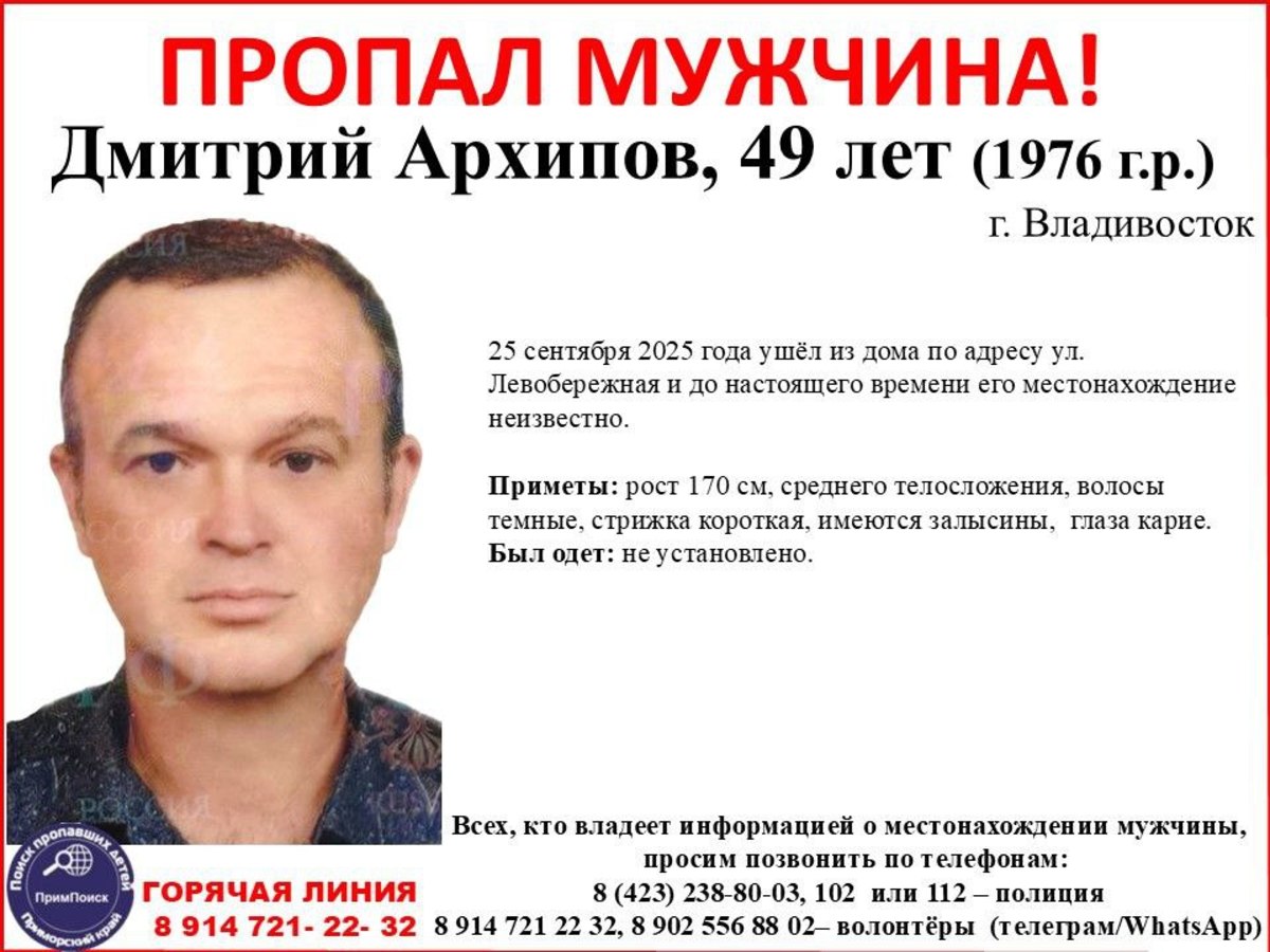 Всех, кто может обладать какой-либо информацией о пропавшем мужчине, просят позвонить в отдел полиции № 6: 8 (423) 238-80-03, 102 или 112. А если вы готовы помочь в поисках, свяжитесь с волонтёрами «ПримПоиска» по телефону: 8 (914) 721-22-32.