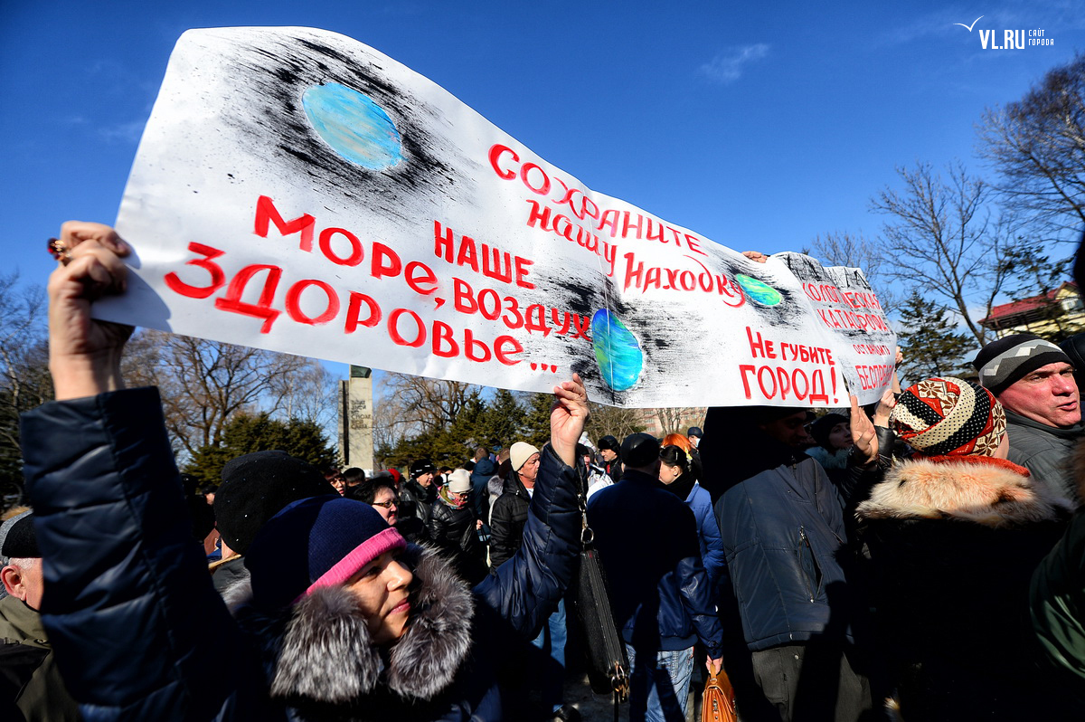4 февраля находкинцы вышли на массовый пикет. На площади у монумента партизанам собрались десятки жителей в марлевых повязках и с плакатами в руках: «Остановите экологическую катастрофу!», «Мы хотим жить в чистом городе!», «Сохраните нашу Находку!». На пикете не оказалось представителей портовых терминалов, да и городские власти тоже замечены не были.