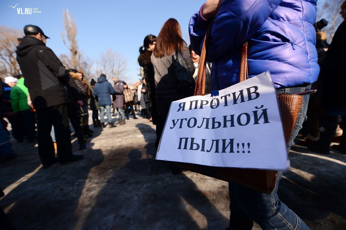 Жители Находки вышли на массовый пикет против перевалки угля открытым способом 4 февраля. На площади партизан собрались десятки горожан в марлевых повязках с плакатами в руках. Практически вся береговая полоса города представляет собой огромный перевалочный комплекс для угля. Под открытым небом круглосуточно горы черного топлива перегружают на суда, а находкинцы страдают от угольной пыли.