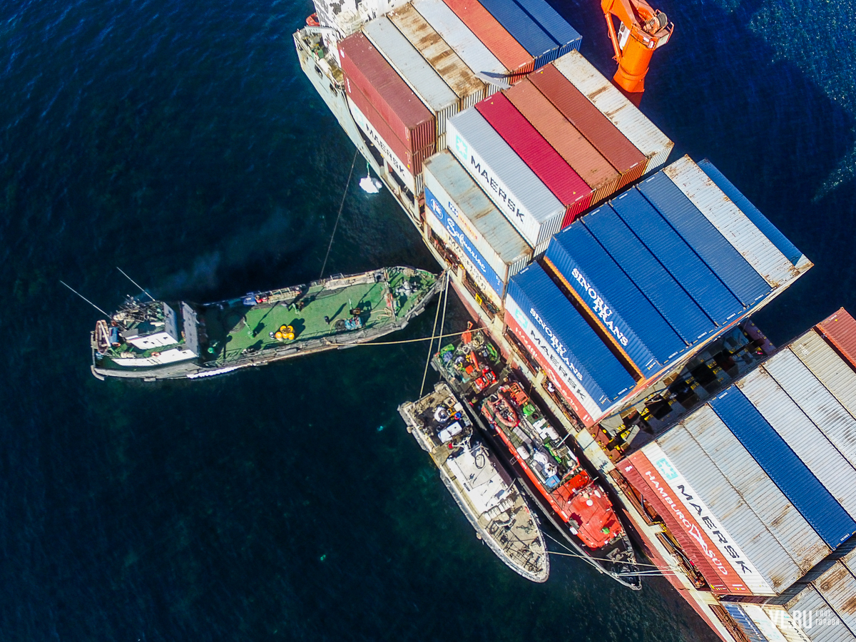 Напомним, контейнеровоз вёз свой груз под флагом Панамы с китайским экипажем на борту. Он сел на мель под Находкой 9 ноября 2021 года. Предварительно инцидент случился по причине обрыва якоря во время высокой волны. Экипаж был успешно эвакуирован, но главной проблемой стало само судно. По правому борту были замечены пятна топлива – тогда это объясняли утечкой нефтепродуктов из машинного отделения, а не из топливного резервуара. Вскоре рядом было обнаружено ещё одно пятно, его обрабатывали сорбентом. Потом началась откачка топлива, но процесс был приостановлен из-за плохой погоды.