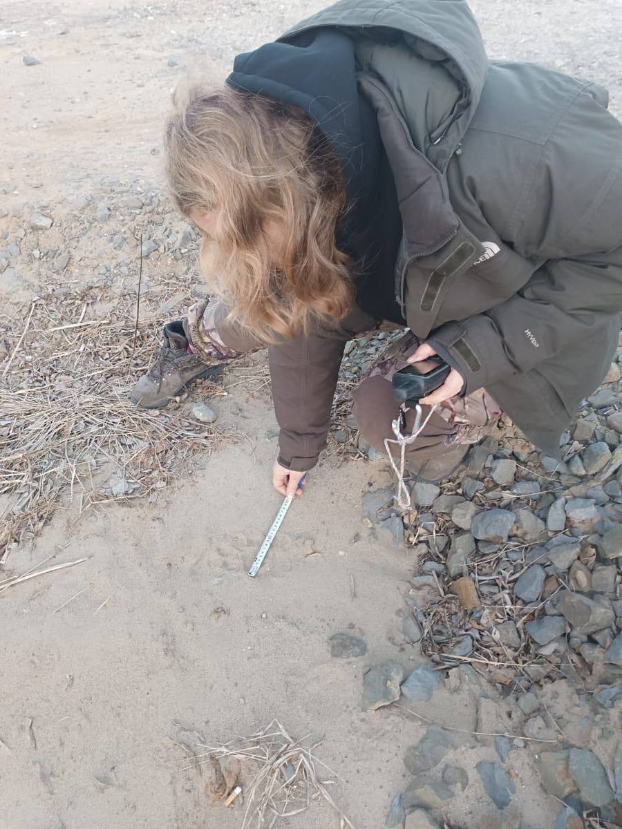 Как сообщил нацпарк, на месте обнаружены несколько отпечатков лап большой кошки. Ширина «пятки» варьировала в пределах от 7,5 до 8 см. Это могут быть следы тигрёнка-подростка либо отпечатки задней лапы молодой самки тигра.