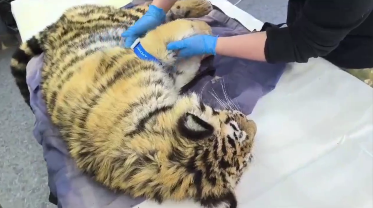 Обновление 14:08: По данным правительства края, тигрёнку 3-5 месяцев, а весит он всего 24 килограмма. У него уже взяли необходимые анализы и поместили в карантинный вольер.